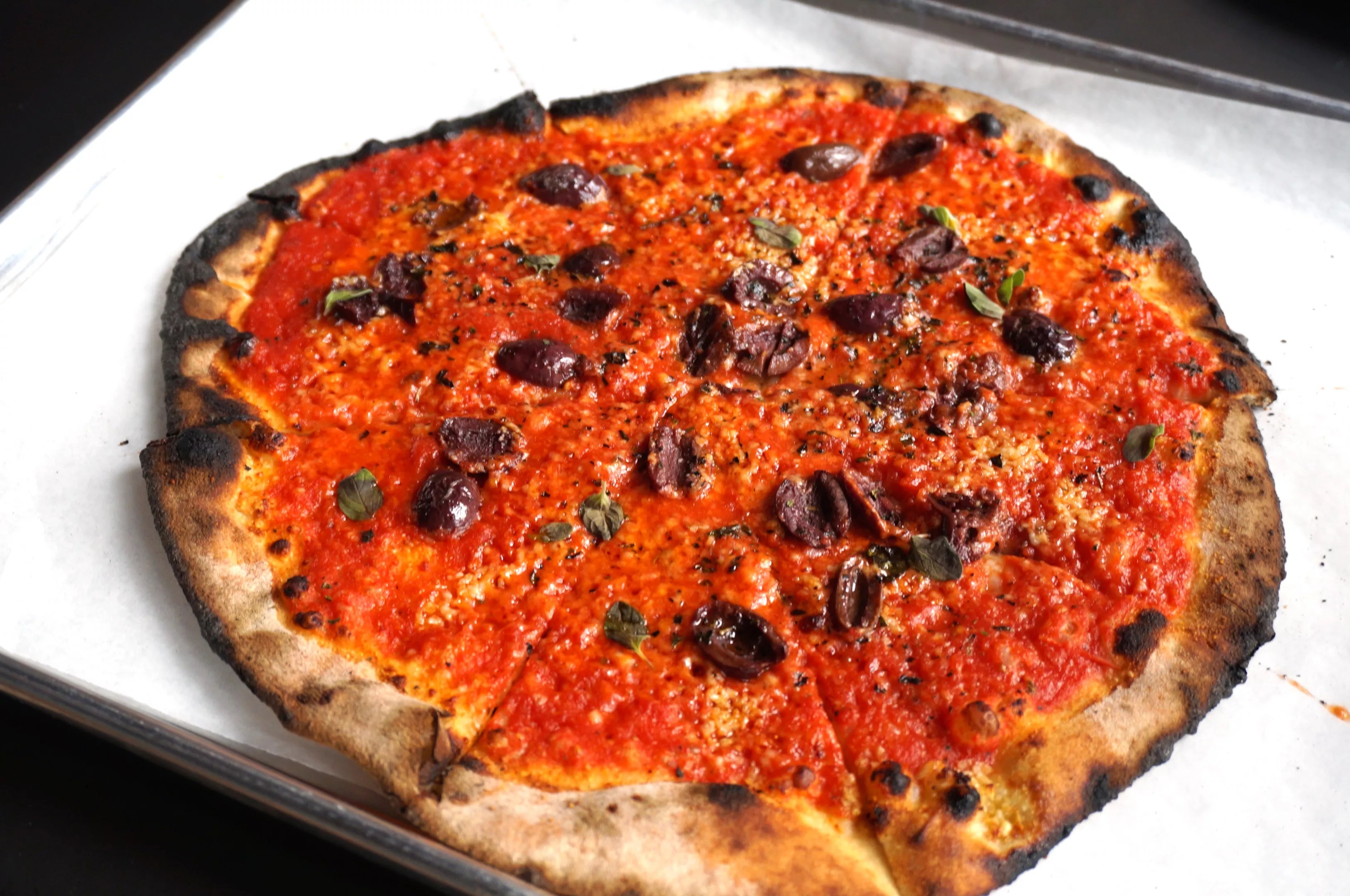 White Pie opened last night in the Uptown neighborhood offering something a little different for pizza lovers: New Haven-style pie. As exemplified by places like Sally’s Apizza and Frank Pepe Pizzeria, the New Haven modus operandi is ultra-thin, crackly on the bottom and a little charred around the edges. Owners Kris and Jason Wallenta take a more staid approach to the oversized original from their childhood in Connecticut, opting instead for a personal-sized pie that goes light on the cheese and heavy on the garlic and herbs. While Denverites might be a little leery of the toasty edges, the hot-and-fast cooking method adds a wonderful rustic quality from the oak-fired oven. Give the Fuggedaboudit a go and see if you like the combo of red sauce, kalamata olives, Romano and Parmesan cheese, oregano and a double dose of garlic.