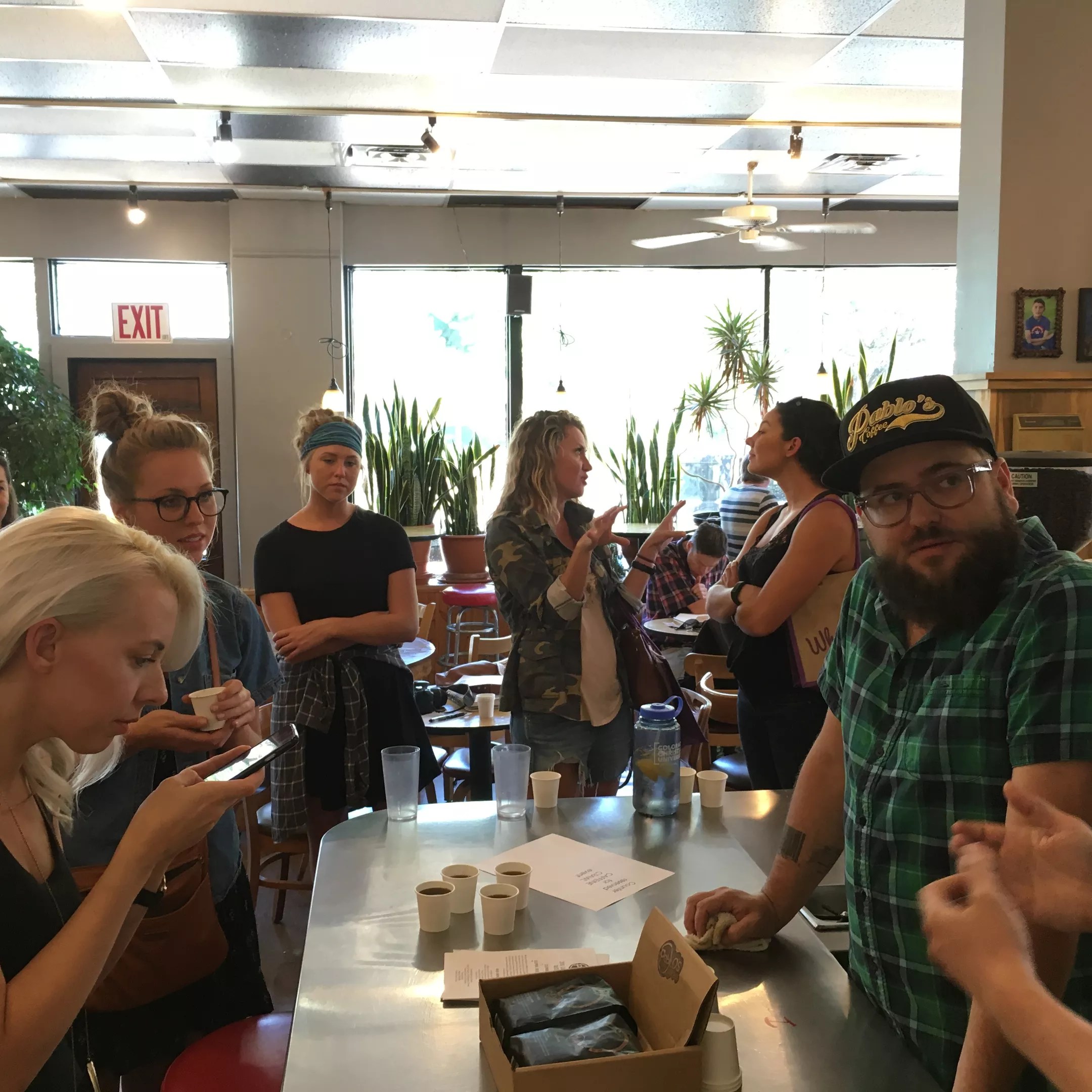 Each stop provides participants with something unique. “They have a presentation, talk or demo…like a pairing of baked good with a signature latte, but instead of eight- or ten-ounce sizes, everyone might get five,” Burton explains. “Or maybe there’s a roasting company and they got in this new Rwanda, and it’s processed a certain way, so they’ll educate people on that process. Another place might get a new Kenyan in and show you different brewing methods. We totally leave it up to the shops completely to do their thing.”