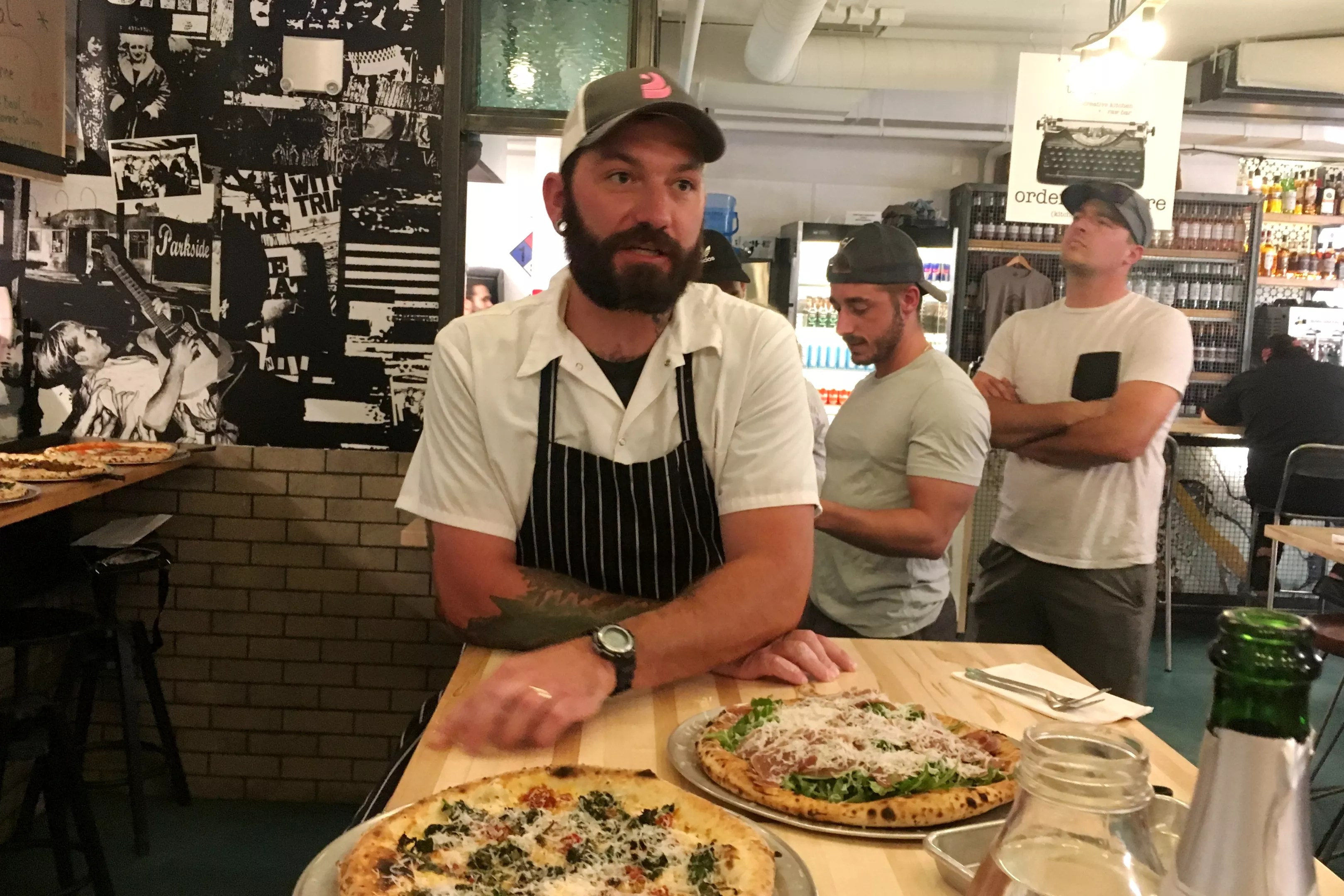 Chef Nate Rajotte shows off Fringe pizzas at Tributary.
