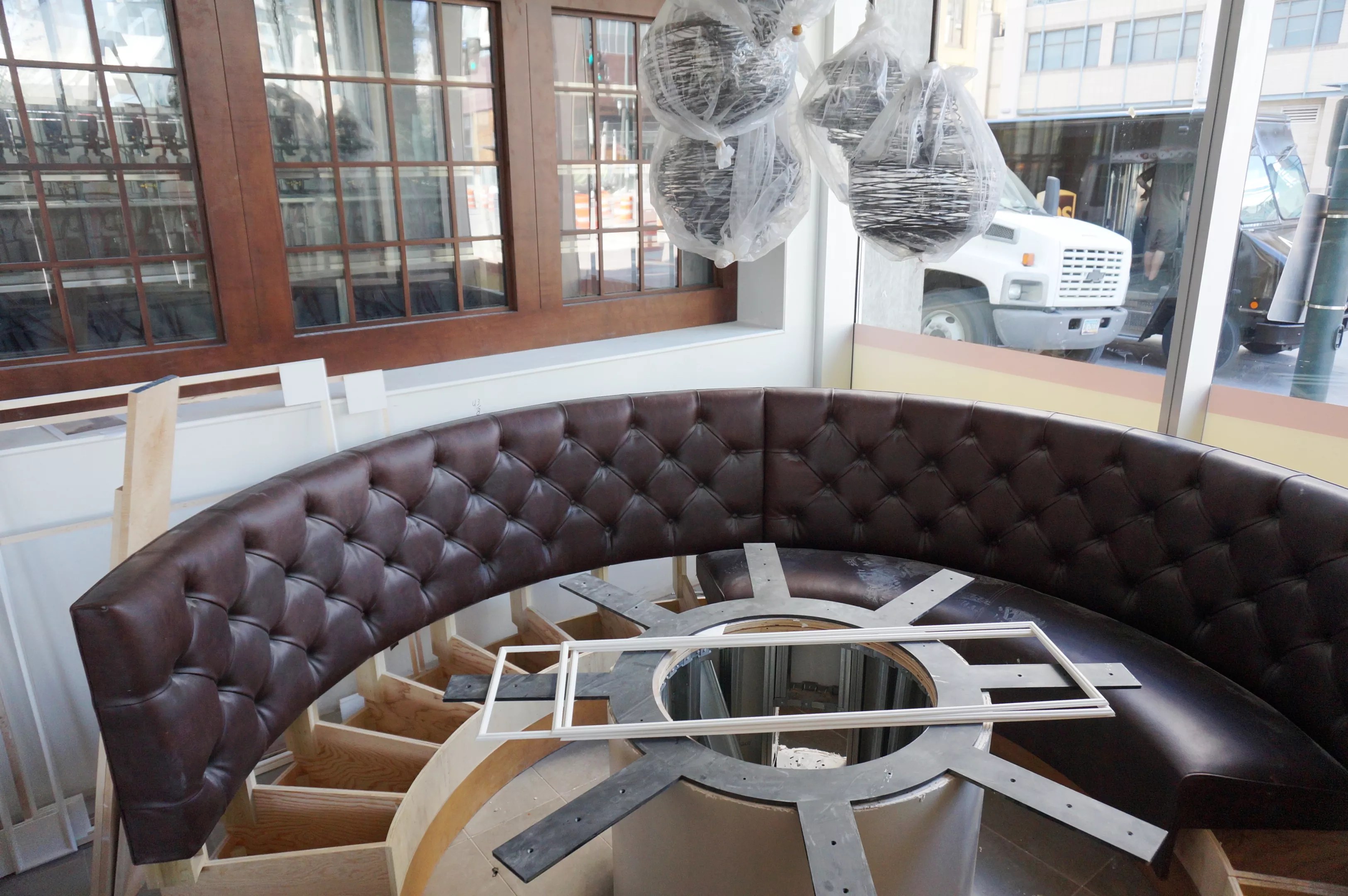 The second is a table inside that could be one of the hottest tickets in town come late May. Why? The table in question is a twelve-top that will be available by reservation only and will sport a beer tap in the middle of the quartz tabletop that will allow guests to pour their own pints. The booth is tucked into a grotto with views into a high-tech keg room and onto Wewatta Street outside.