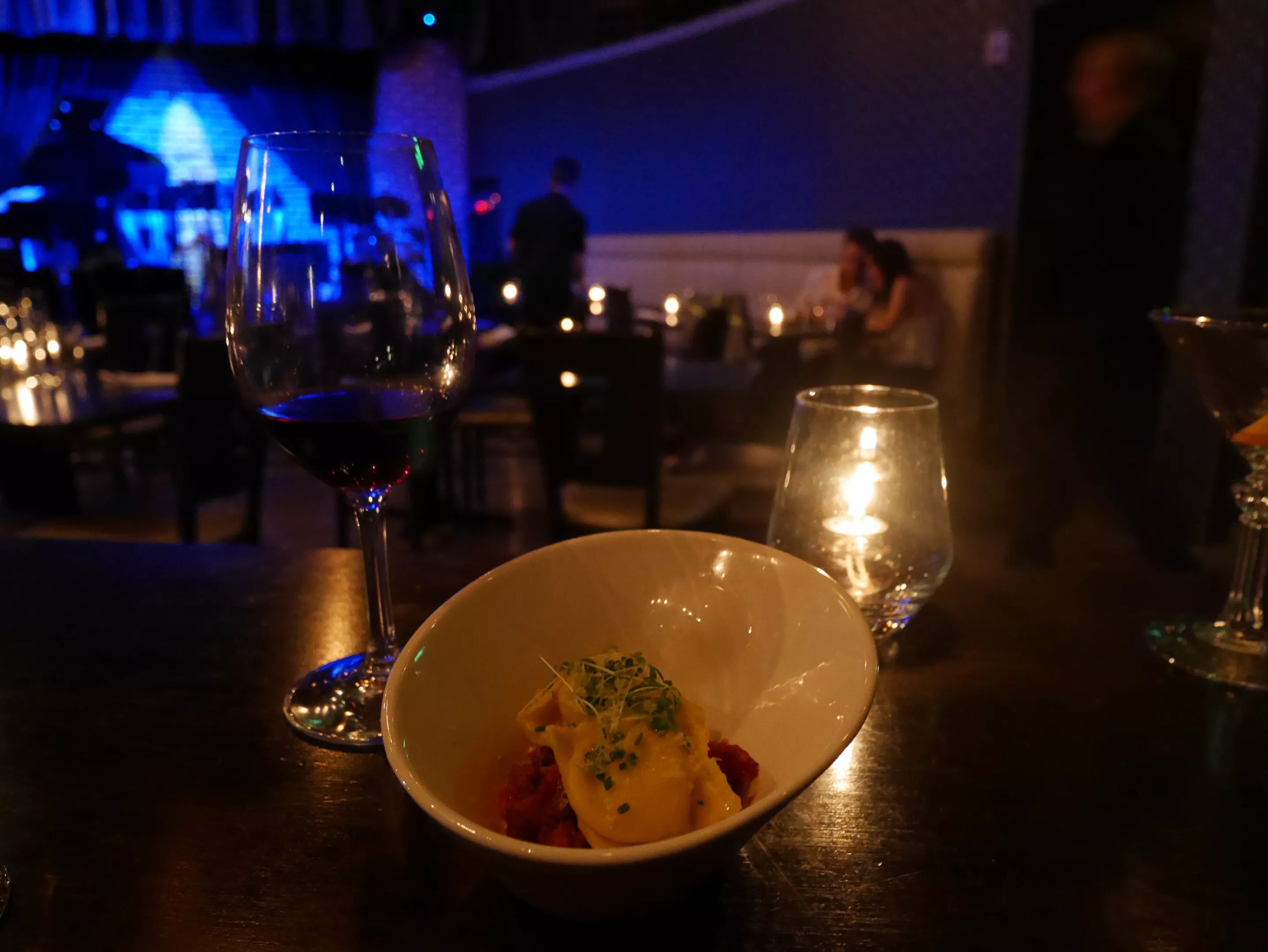 A visit to Nocturne feels out of the ordinary, whether you’re looking for a classic cocktail or meeting for a fancy date. Once you’re inside, a charming host will offer to take your coat in exchange for a playing card you can hold on to until your night is done. The space inside is large and open, with the bar, dining room and stage joined together by graceful curves and a high ceiling that allows great acoustics for the band.