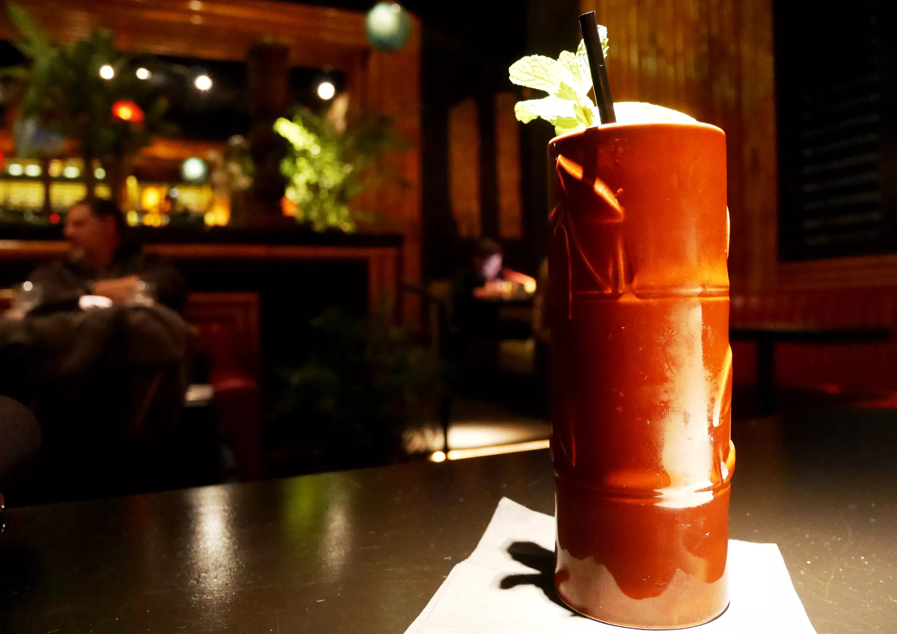 As you read through the cocktail menu, drinks like the Hurricane and the Pain Killer will take you back to memories of the beach on spring break. Start your evening off right with a Suffering Bastard. Unlike what the name suggests, you won’t suffer through this drink – or its price, which falls on the low end of the cocktail list. In the bright light that hits the center of the table in the otherwise dimly lit room, the lime in the bamboo-shaped ceramic cocktail vessel glows on the drink’s surface. The gin and ginger beer dance on your tastebuds with each sip, and the lime cuts through the gin-and-brandy mix.