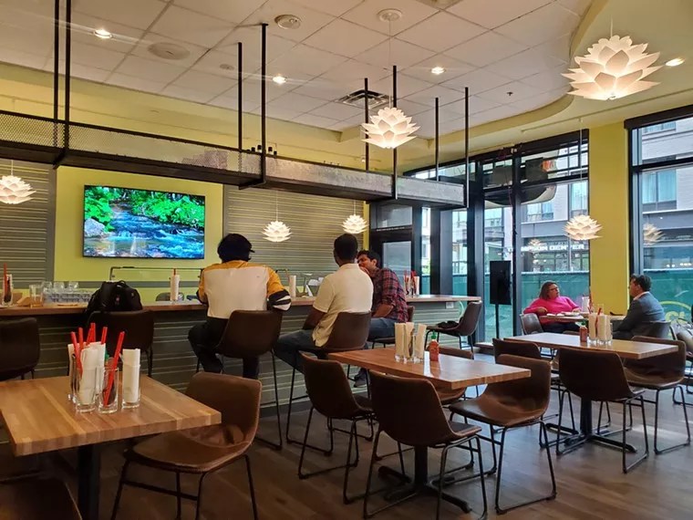 Edwin Zoe’s Dragonfly Noodle on the 16th Street Mall also uses a service fee model.
