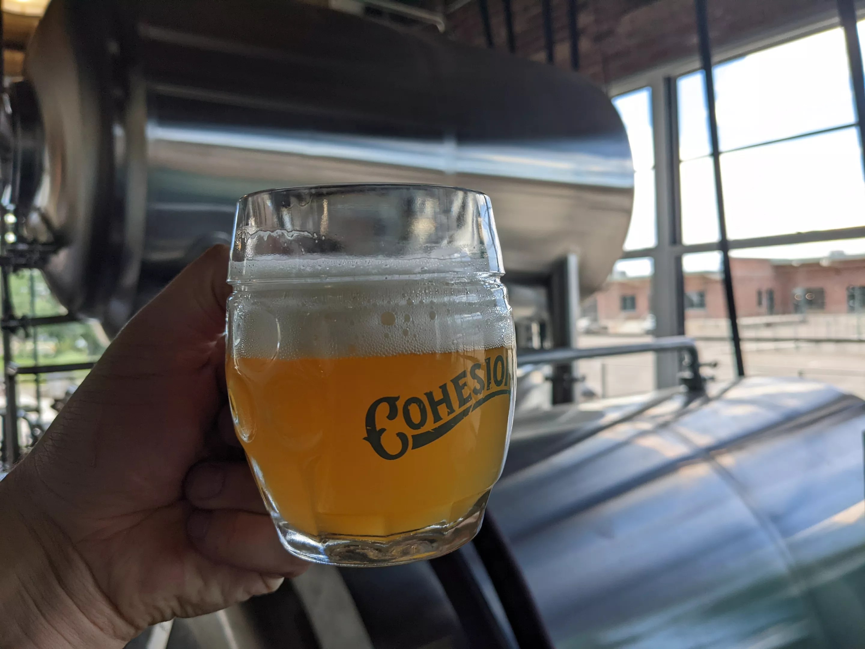 Unfiltered lager off the fermenter tanks at Cohesion Brewing.