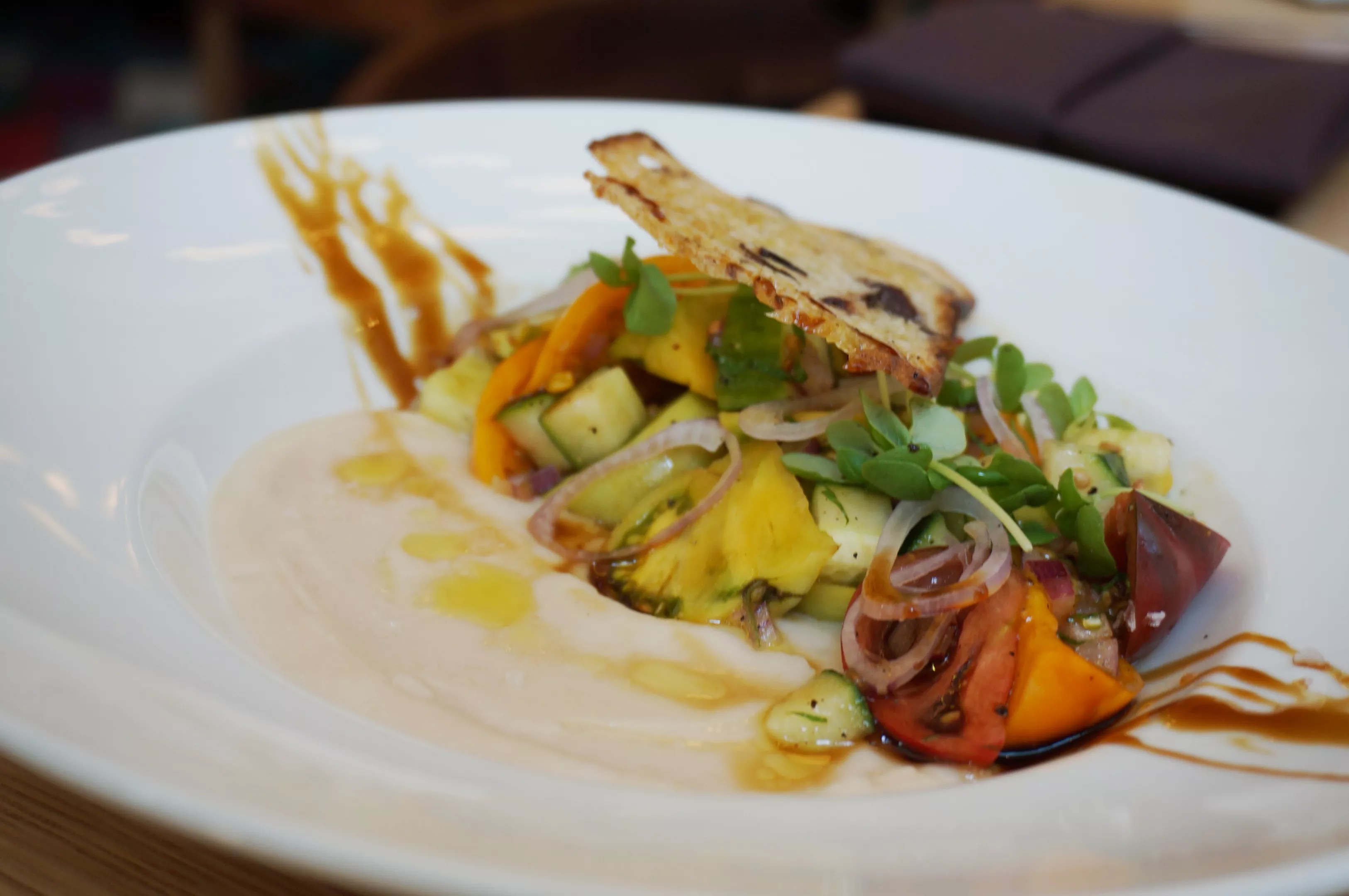 Starkus notes that Urban Farmer definitely fits the steakhouse definition – with a dozen cuts and sizes at the center of the menu – but says the restaurant’s overall mission is true to its name. Out front on the patio facing Wazee Street, herbs, edible flowers, microgreens and sprouted grains grow in rectangular planters. On the rooftop, several beehives buzz with activity; the chef is nearly done with a seven-year program to earn his master-beekeeper certification from Oregon State University. And in the kitchen, primal cuts of beef age a minimum of 21 days in a climate-controlled room, while whole-animal butchering provides the menu with cuts of lamb, beef and pork.