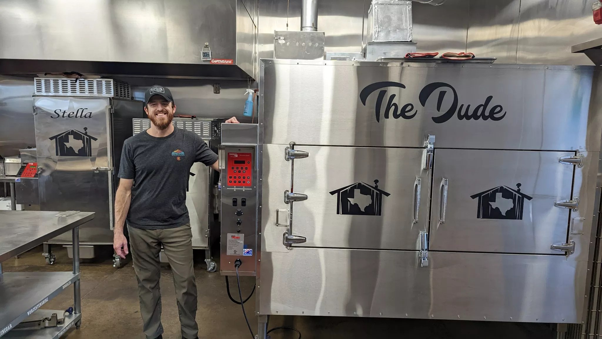 Wayne Shelnutt with the new smoker at the Smoke Shack.