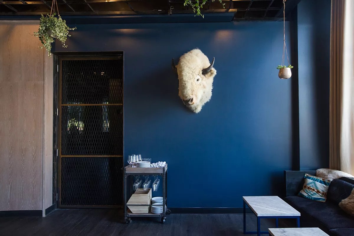 The space itself establishes Wayward as distinct from the Way Back, with a design by Raw Creative that pulls influence from Colorado’s desert and mountain landscapes but also feels like a cozy family room. Antique knickknacks on shelves are meant to recall “your living room,” says Gianinetti, and cacti potted in a collection of antique beer cans have a more personal meaning: The cans belonged to Gianinetti’s friend’s father, who passed away several years ago.