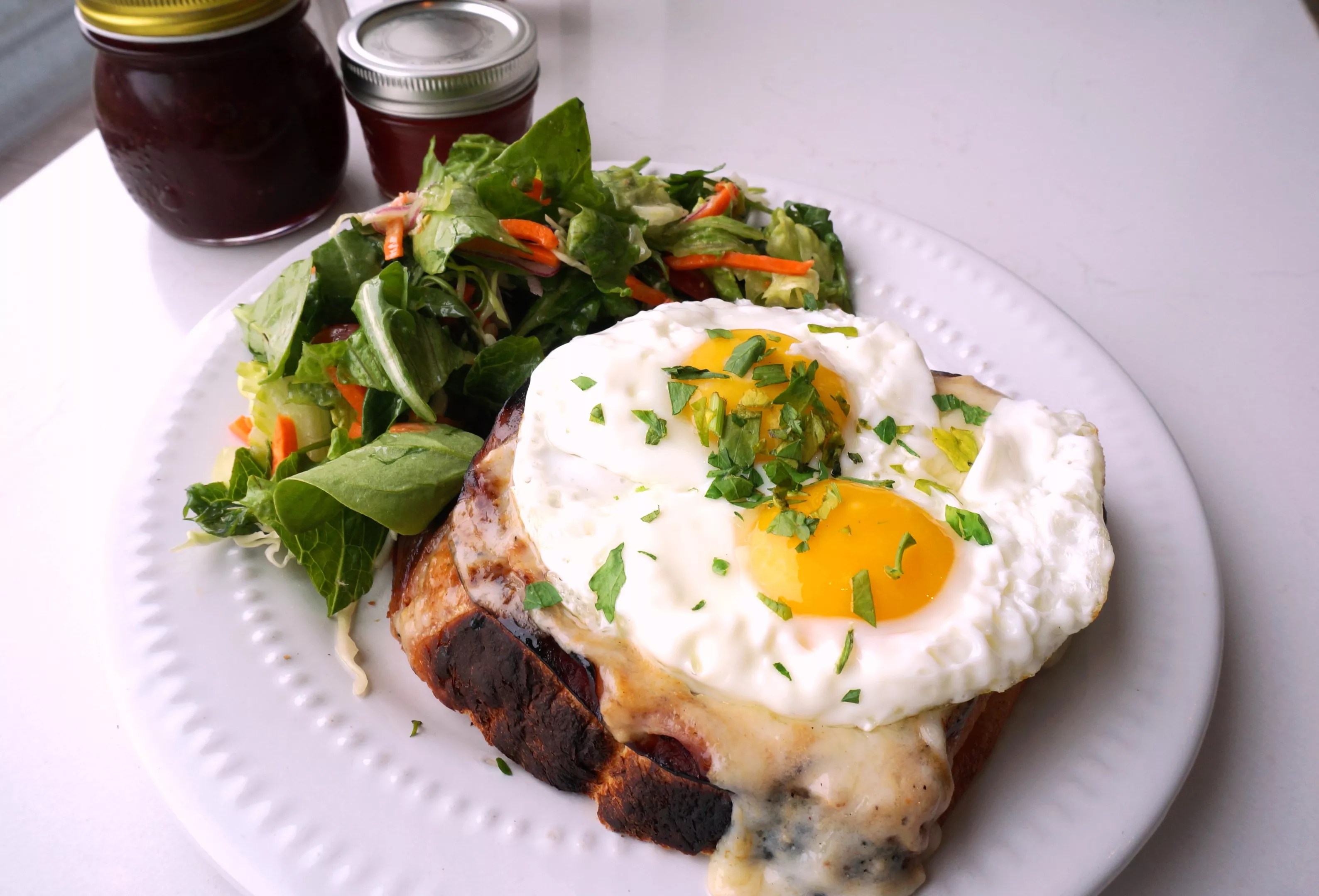 Those who hang out at chef/restaurateur Mary Nguyen’s original Olive & Finch on East 17th Avenue know how hard it is to choose from the wonderful sandwiches and skillets. That’s even more the situation at the new Cherry Creek outpost, because the menu is bigger and the pastry case is loaded with tempting treats. Do you go with an Italian-style sub, a weighty roast-beef sandwich, or a bowl of creamy polenta enriched with poached eggs and cheese? If you’re like us, you may need to wave waiting customers ahead of you in line while you make up your mind. But eventually a decision must be made, and right now our favorite is the collision of breakfast and lunch known worldwide as a croque-madame. Nguyen doesn’t stray far from tradition with her version of the French sandwich, except possibly by making it bigger. Ham and Gruyère are tucked between two sliced of housemade brioche. Grilled, blanketed in bechamel and topped with two glistening eggs, the construction is comforting and filling – and it’s available all day, from when the doors open at 7 a.m. to when the kitchen winds down at 10 p.m.