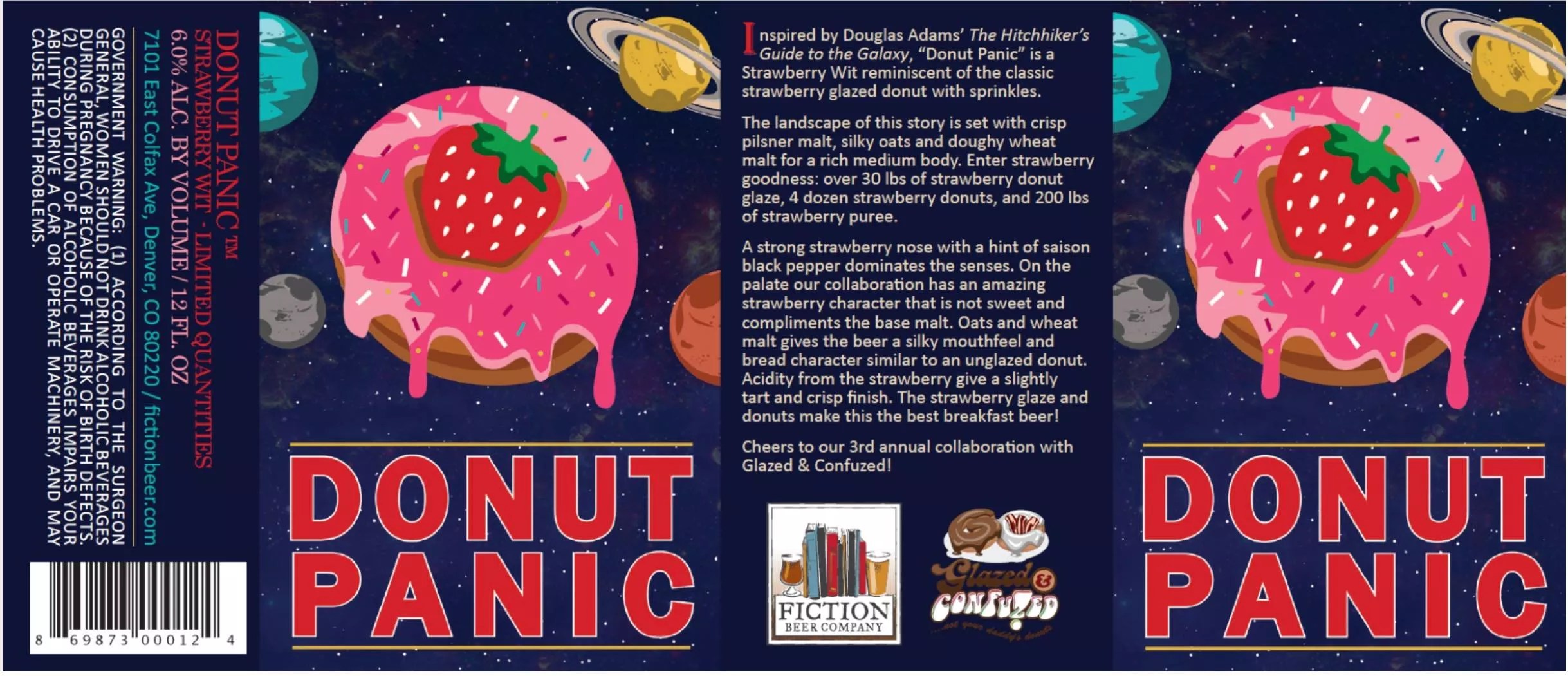 Every December Fiction Beer Company brews a beer called Donut Panic in collaboration with Glazed & Confuzed Doughnuts, and although plenty of other Colorado breweries have made beer with doughnuts, Fiction takes it to new heights. Last year’s was brewed with strawberry doughnuts with sprinkles, and the brewery typically holds an event during which it pairs the beer with actual doughnuts. Donut Panic was also canned for the first time last year.