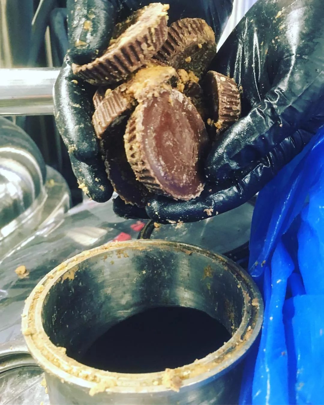 Peanut butter cups going into the brew.