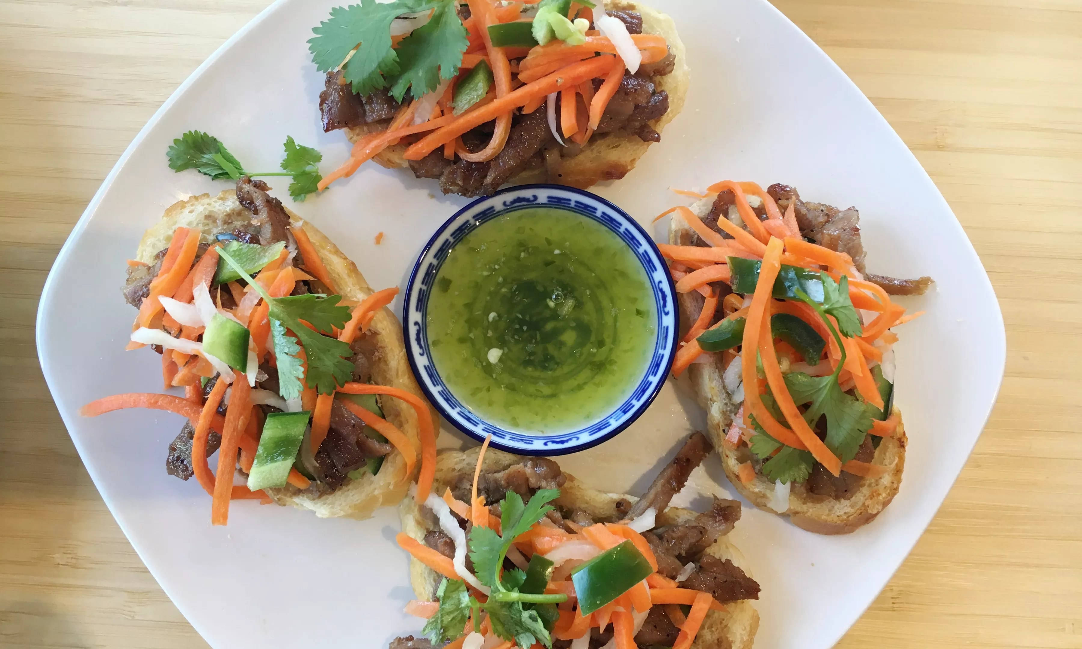 Much of Zomo’s menu comes from Davey’s grandmother, Chi Nguyen (everyone just calls her Ma), who once had her own restaurant in Kansas and was previously the chef at Pho Golden in Golden. Everything is made from scratch, from the pho broth simmered for hours in an eighty-gallon steam kettle to the pâté on the banh mi bites (traditional banh mi served open-faced like bruschetta). Davey has been working on a recipe for making her own baguettes, but for now she’s sourcing bread from other Vietnamese bakeries.