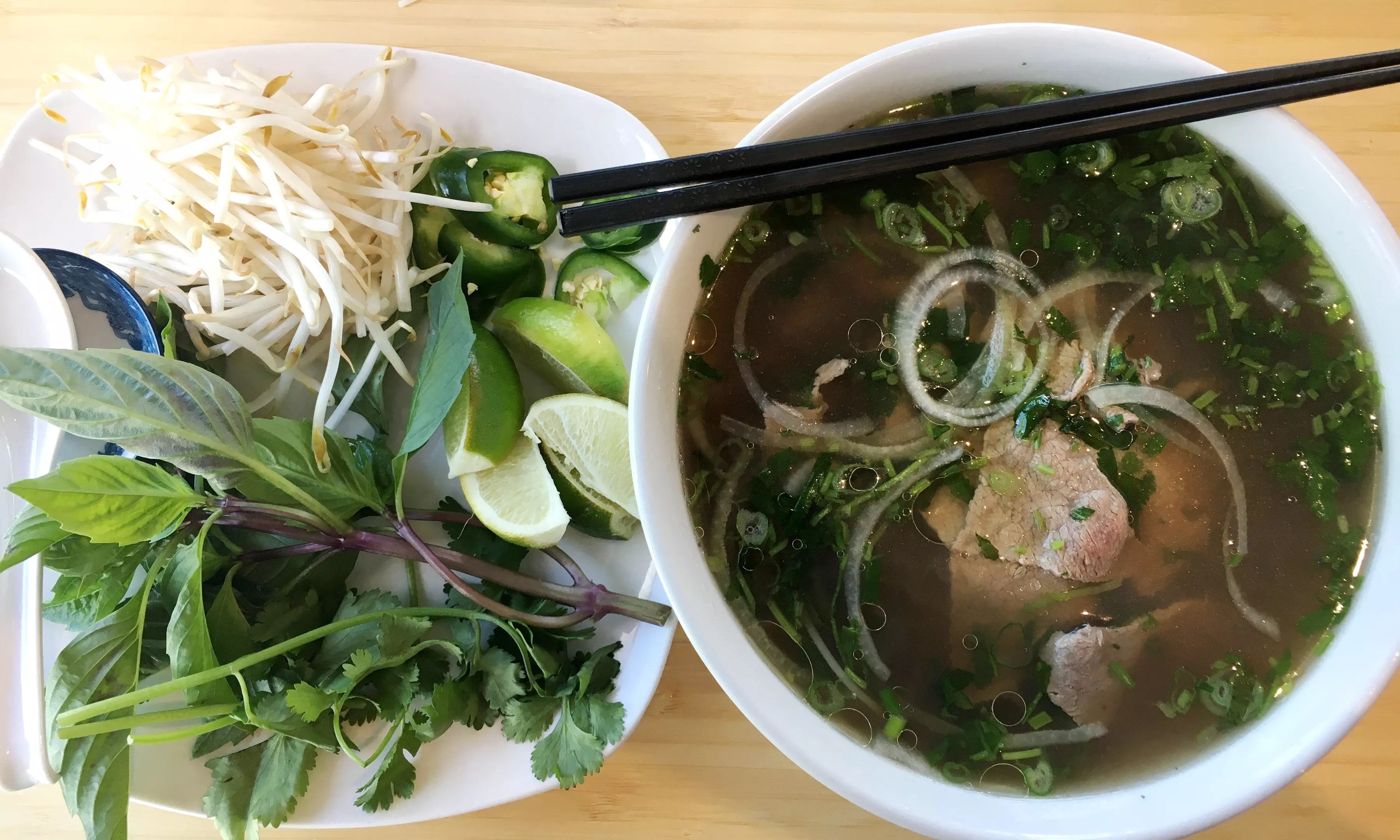 The menu is small right now, and dishes are labeled in English and Vietnamese. Traditional items include spring rolls, green papaya salad, bun (noodle) bowls, and Ba’s shrimp skewers, based on her grandfather’s recipe. But there’s also a house burger that can be ordered “classic” or “Viet-style,” along with a side of hand-cut taro fries. A menu expansion is in the works, which could include the Vietnamese-American meatloaf (made with glass noodles in the mix) Davey grew up eating, and banh xeo “tacos,” which will be traditional Vietnamese crepes made in handheld size. Midwestern touches include Jell-O cake and apple-pie egg rolls for dessert.