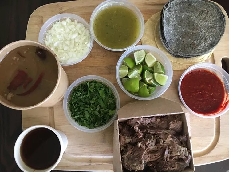 El Borrego Negro isn’t your typical hole-in-the-wall taqueria. In fact, it’s little more than a hole in the ground. Chef Jose Avila founded the sheep barbacoa operation in late 2020 to bring the taste of real Mexican barbacoa de borrego to Denver. He acquired a flock of sheep that roam a farm in northern Colorado, built a brick-lined oven in the earth behind the RISE Westwood building on Morrison Road, and began sourcing maguey leaves, herbs and heirloom corn for his barbacoa and handmade tortillas. He cooks the whole sheep in the underground oven every Saturday night, along with an out-of-this-world consomé glistening with fat drippings, and serves the shredded meat every Sunday morning out of his X’Tabai Yucateco food trailer, along with nixtamal tortillas, salsas, a quart of the consomé and sides of onion, cilantro and lime. The whole setup feels like one of Denver’s best-kept secrets, since there’s no phone number, no menu and no website. You just pre-order through Instagram DM, or show up and take your chances – a big risk, because the barbacoa always sells out.