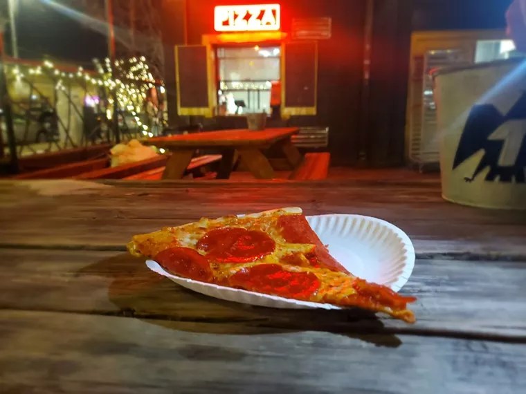 Joshua Pollack, a New Jersey native, has been on a mission to bring a taste of the East Coast to Denver since opening his first Rosenberg’s Bagels location in 2014. With Famous Original J’s at the 715 Club, he’s given the city a slice window of the highest quality. Yes, you can get whole pies here (both regular and gluten-free), but nothing beats standing under the neon glow of the red “pizza” sign with a cocktail in one hand and a paper plate in the other as you scarf down a hot slice.