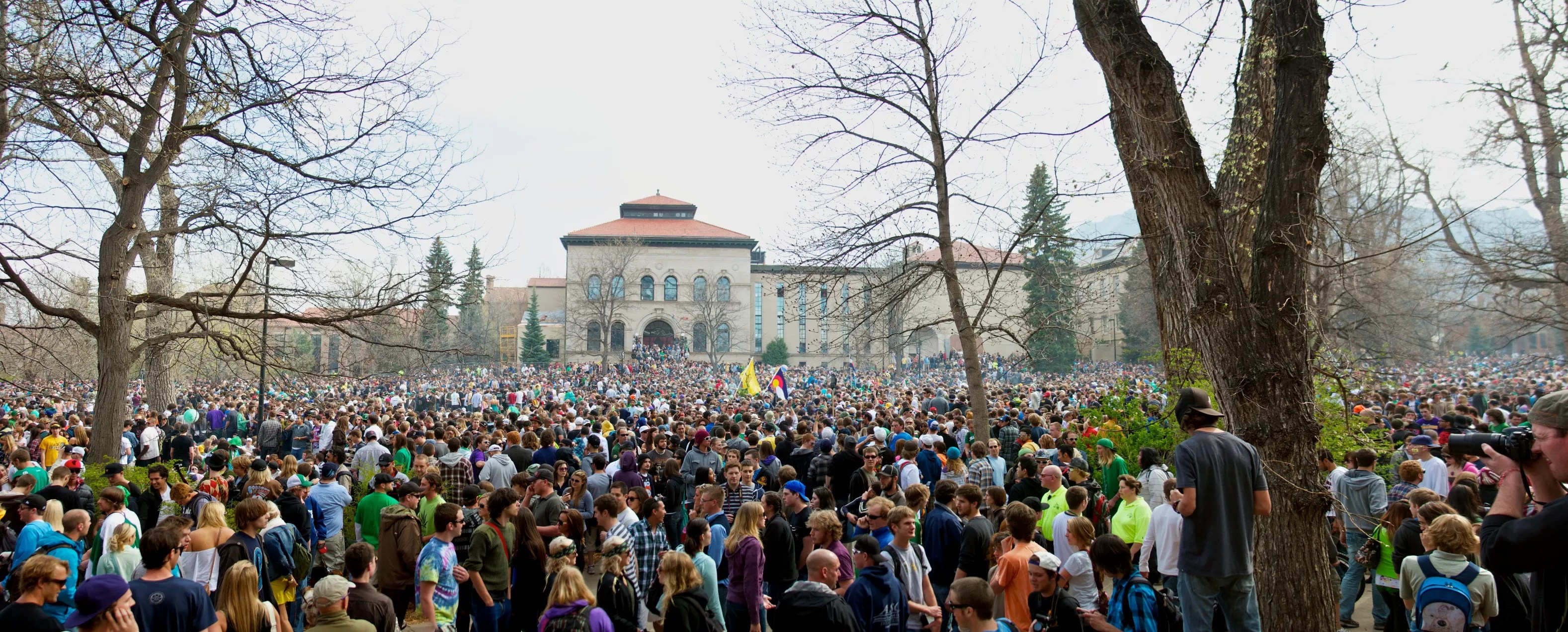 That’s when CU students began holding public smokeouts at Farrand Field on April 20, the unofficial cannabis holiday known as 4/20. In 2003, there were nearly 1,000 people on the field, and attendance continued to grow despite public discouragement from university officials. In 2005, the school began turning on sprinklers around 4:20 p.m., watering the lawn and protesters. The year after that, photos of 4/20 crowd members were posted online by CU police, with financial rewards offered for identification of students on the field. None of that discouraged the unofficial holiday.