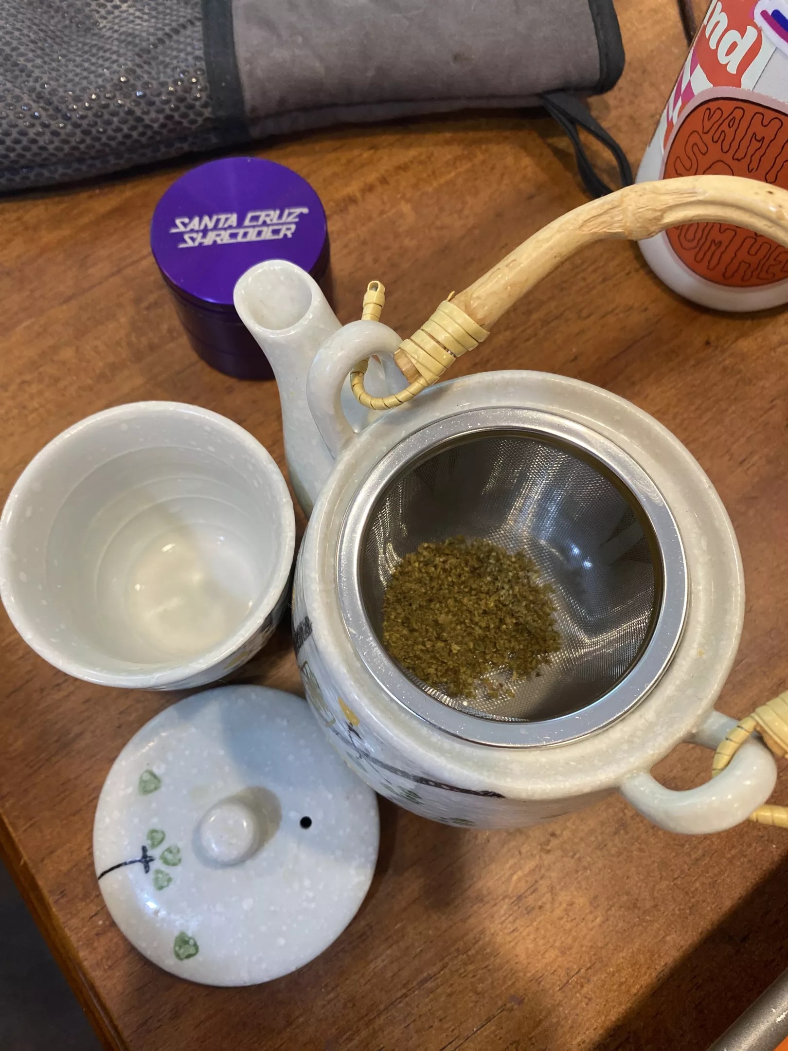 I learned recently that you can make tea with cannabis by decarbing it and then steeping it in boiling water. I’m already a tea drinker, usually consuming a cup of green or white tea in the early afternoon. Adding a tea strainer full of cannabis to my tea blend replaces the need to munch on a (high) tea cake. Cannabis tea accommodates both indica and sativa strains nicely, as well, so I’ve been able to make both daytime and nighttime brews. Gummies, tinctures, sugar, coffee and peanut butter are just some of the other ways to ingest cannabis, some of which I’ll be trying soon.