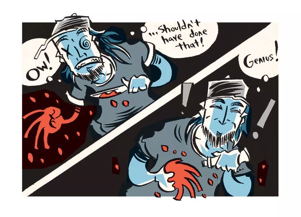 “As we were beginning to break down our gear, Rocky from Mega Blue Stallion let us know that his guitarist’s wife had gone into labor and that they wouldn’t be able to play their set. We huddled and decided to play a set of cover material, as we had already exhausted all our original songs. We turned our amps back on, had a shot of something nasty and got to work. By the time we started playing again, the Super Glue had lost most of its mojo, leaving my fret board covered with blood. We finished the night out slightly buzzed and bloodied, but we picked up more gigs at 3 Kings for our efforts.”