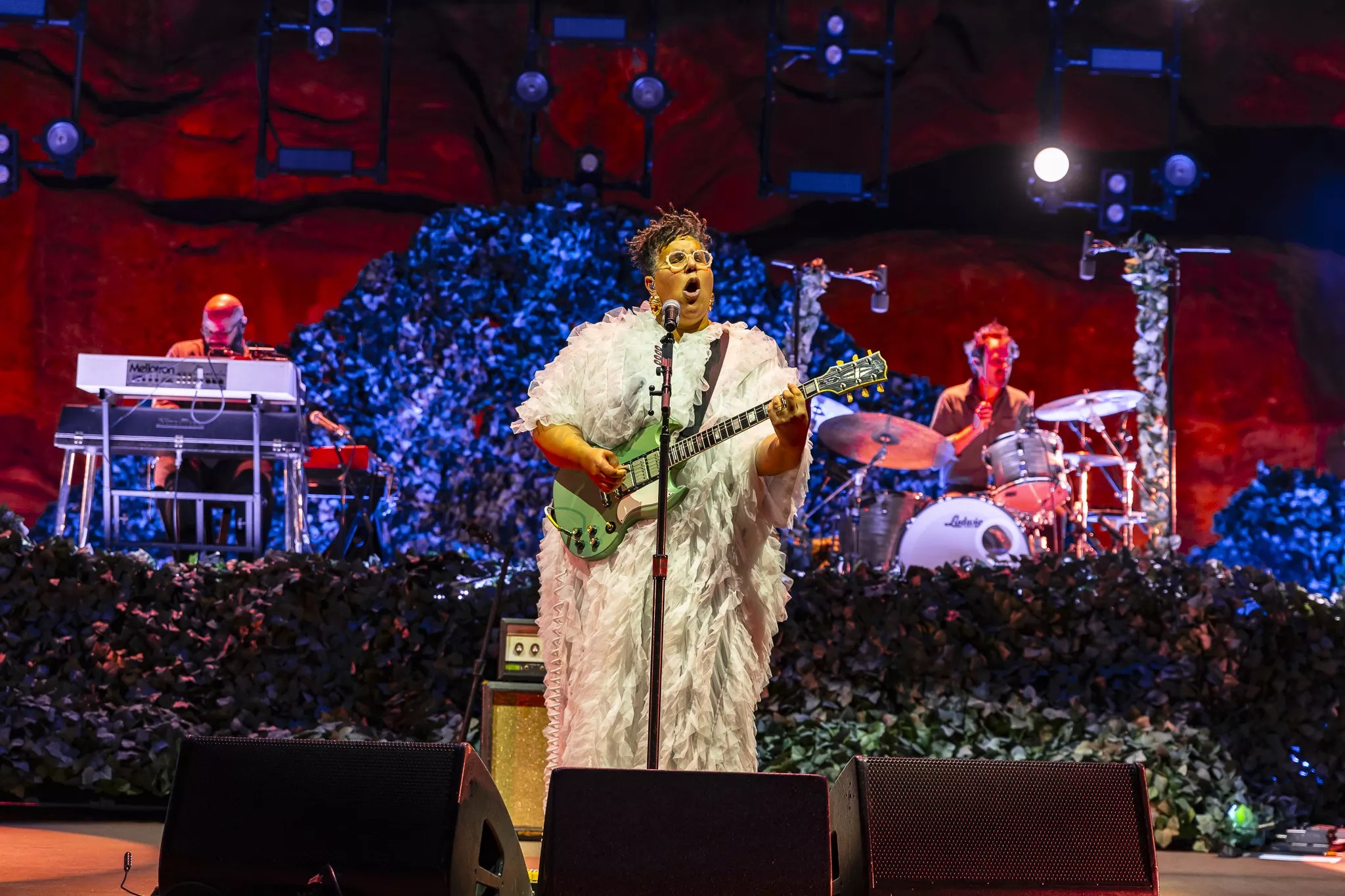 As the evening began, Brittany Howard emerged from the shadows, draped in a flowing, all-white chiffon outfit. The ethereal look, complemented by vines hanging from the rafters and the distant sounds of crickets, set a mystical, almost sacred tone for the night ahead. It was an entrance that seemed to honor the soulful grit and depth of her music – a feeling that would resonate throughout the entire performance.