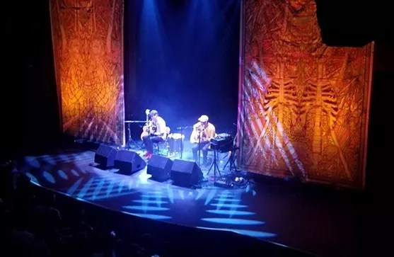 As a whole, Animal Collective’s surreal 2005 album Feels is the group’s masterpiece, bringing together the wild, campfire-psychedelic vocals of Sung Tongs with twinkly synthesizers and explosive rock. But as a psychedelic crevasse listeners can tune in and turn off to, Sung Tongs (famously recorded on Tare’s parents’ land in Lamar, Colorado) is a landmark achievement in gorgeous, stripped-down weirdness, the effectiveness of which was on masterful display at the Ogden with just Portner and Lennox’s vocals, acoustic guitars and sparse mood lighting captivating the crowd.