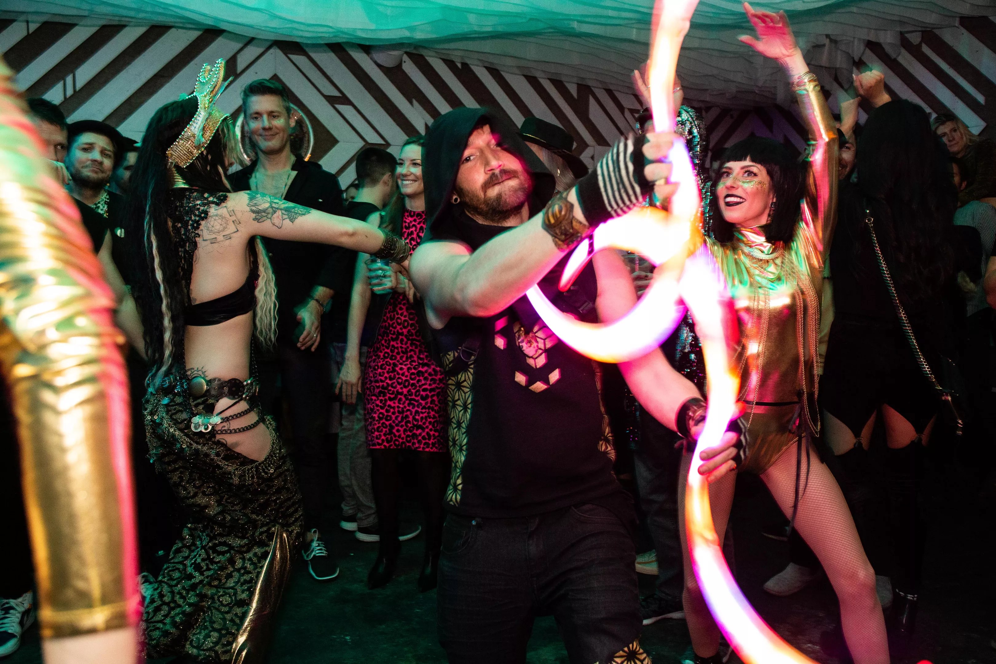 The Beacon has been a long time coming. We initially wrote about this Tulum and Burning Man-influenced art bar and venue back in March 2021, when co-founders Robert Champion and Mario Nocifera were still breaking ground on what would become a kaleidoscopic sanctuary to revelry and creation. Since then, they raised $61,000 through an IndieGoGo campaign, completed construction, added a pristine sounding Traction sound system and opened the Beacon’s doors to an eclectic group of artists, psychonauts and revelers. Its second grand opening party, on Saturday, January 29, featured Dutch house music romanticizer, Alex Cruz, and Westword was there to take in the high vibes.