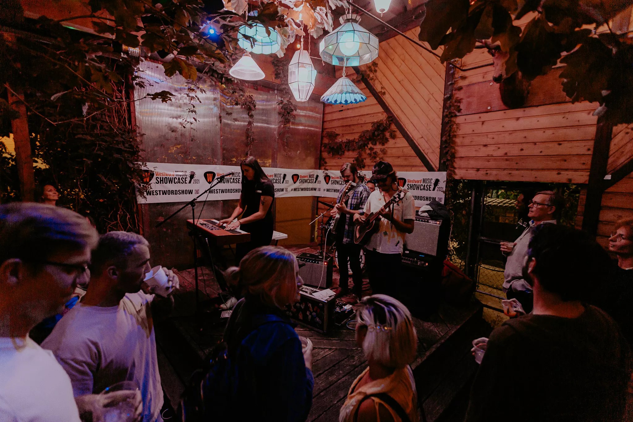 Bands perform on Number Thirty Eight’s outdoor patio stage even in colder months.