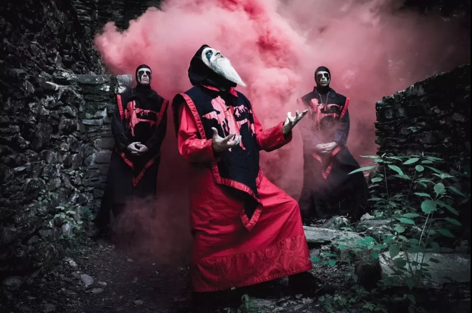 Over the years, which includes a nine-year hiatus from 1992 to 2001, the cloaked unholy trinity, which currently includes guitarist Adam Besserer and bassist Pat Davies, hasn’t been shy about spreading sacrilegious gospel with such album titles as Disgusting Blasphemies Against God (2010) and Thy Kingdom Cum (2013). The band’s upcoming record, Cruz Simplex (releasing September 22 via Season of Mist), mocks the stations of the cross, a Catholic tradition that chronicles Jesus’s last day on Earth. The first single from the album, “Take Up the Cross,” is inspired by the second station and Jesus being forced to carrying the cross he’d eventually die on.
