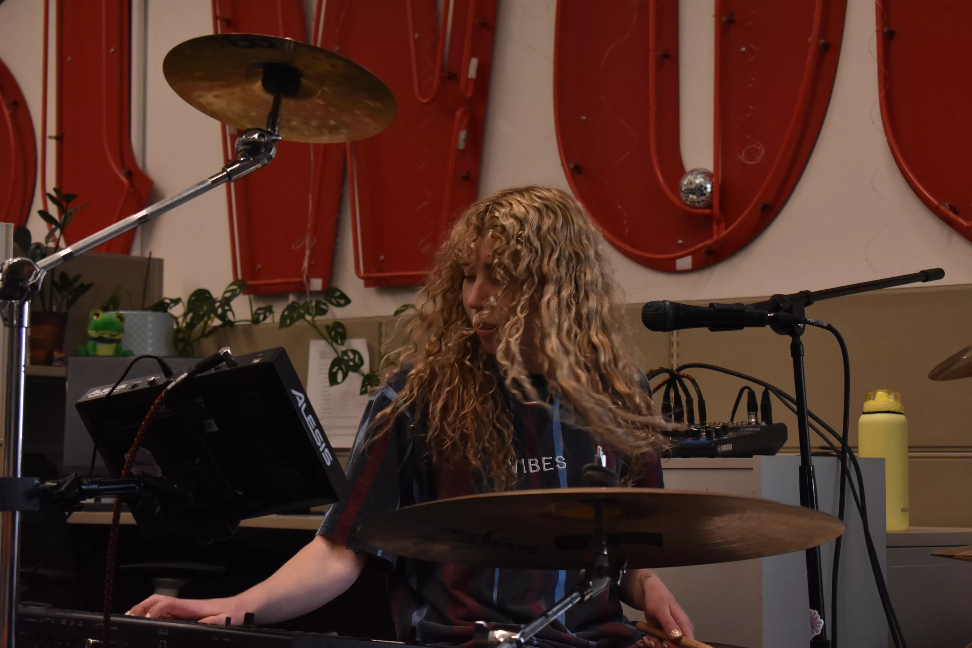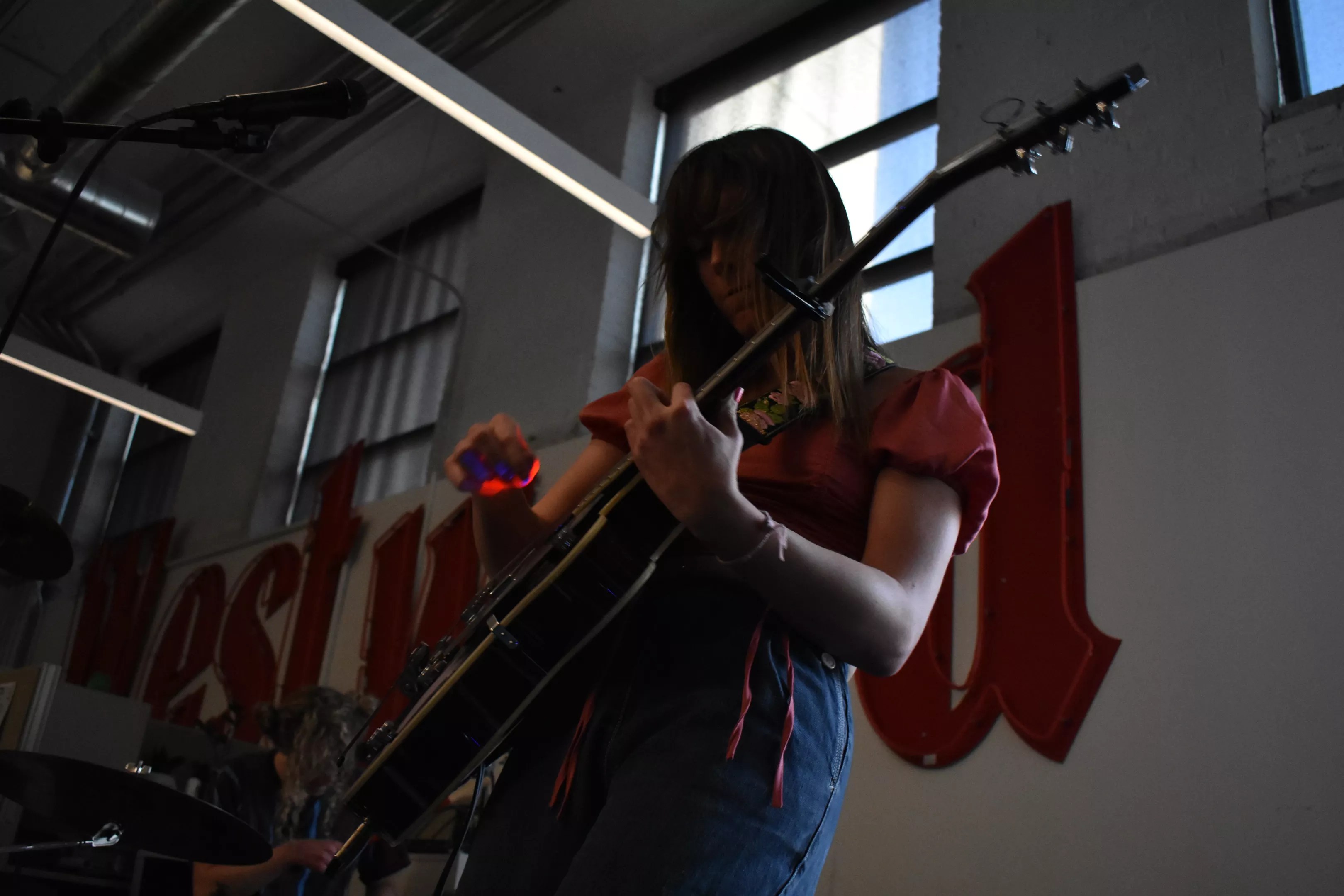 Blankslate performed around the editorial desks in front of the Westword sign that used to be outside our old office on Broadway, while members packed the surrounding area. After the concert, I hosted a Q&A with Condron and Dunn, who told us what it’s like being musicians in Denver, discussed touring and talked about their creative songwriting processes. The band is newly a duo (it was previously a trio), with Dunn only recently handling vocals. “It’s been empowering to sing my own lyrics,” she told us.