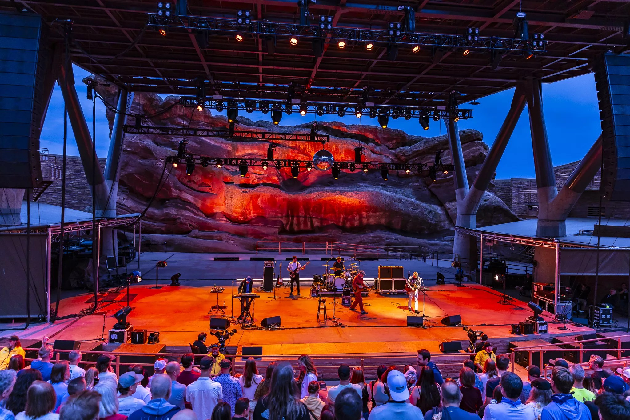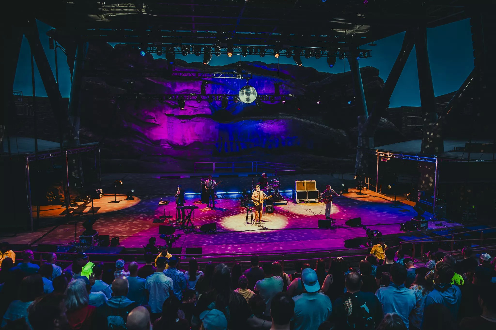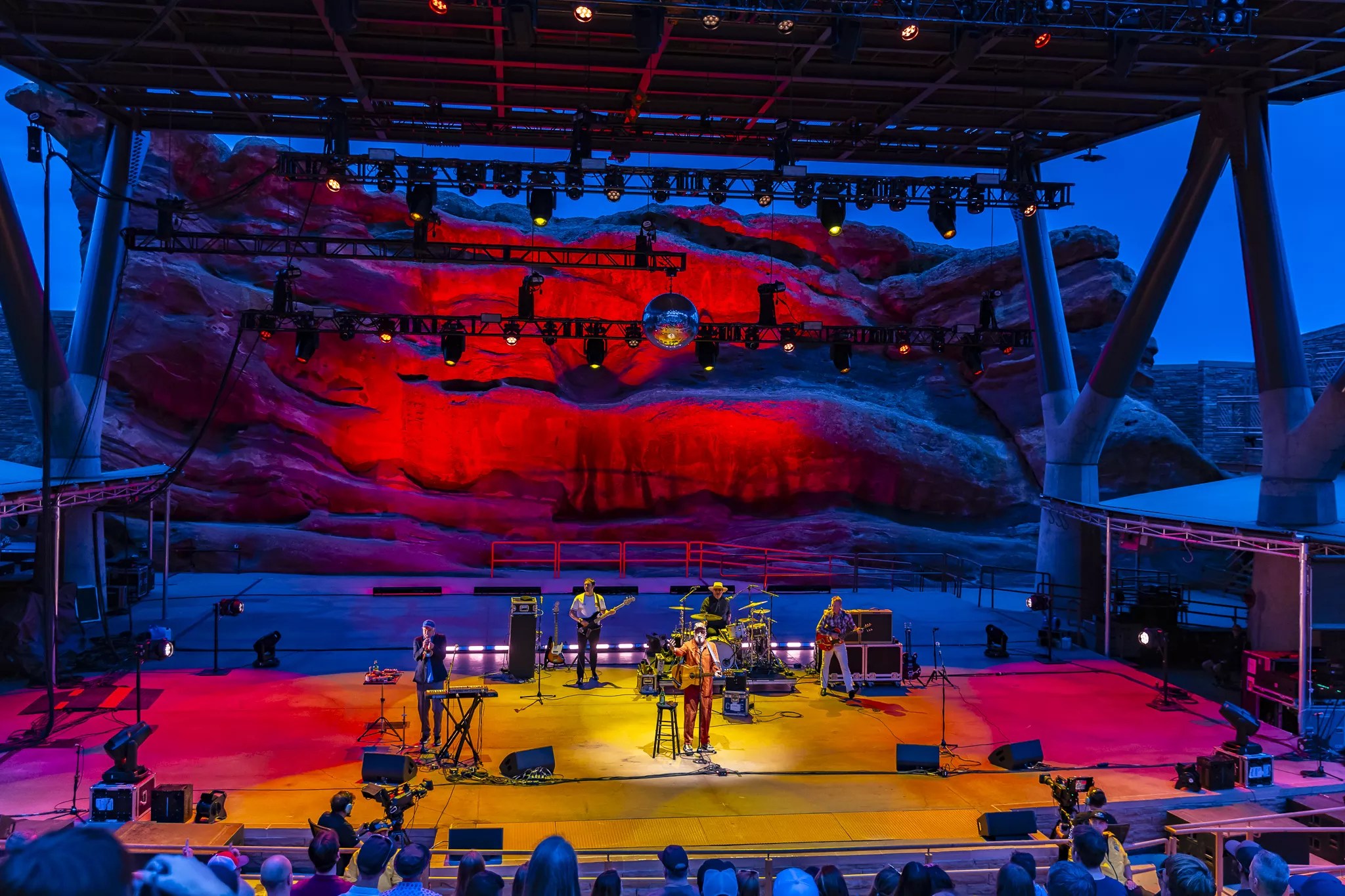 A disco ball helped set the mood for CAKE’s performance at Red Rocks.