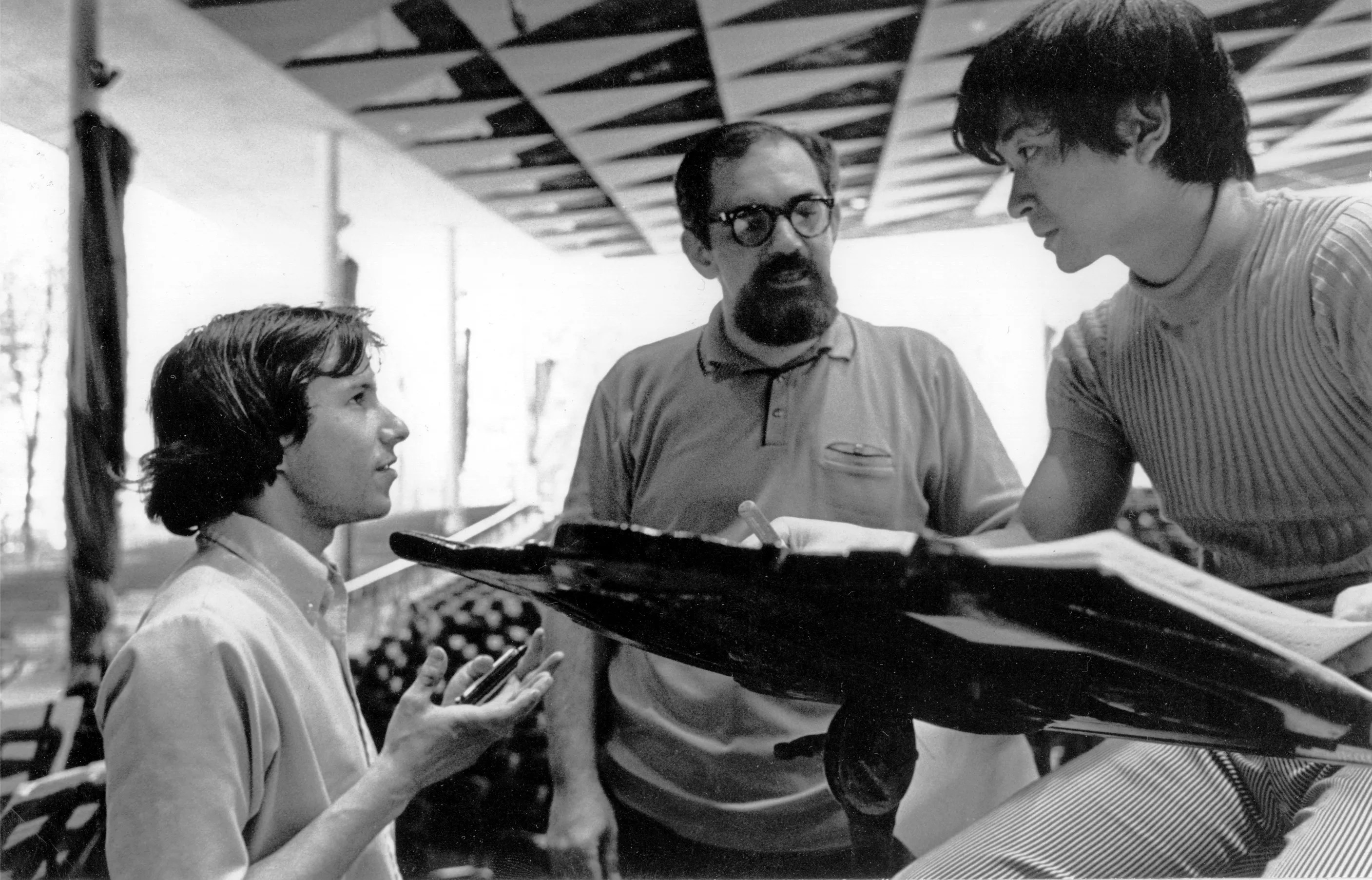 Corky Siegel (with harmonica), William Russo and Seiji Ozawa preparing for a rehearsal with the Chicago Symphony at Ravina, July 1968.