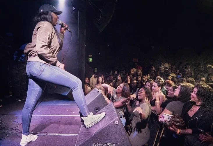 “I [found competition in the local scene] until I connected with these girls,” Simone says. “I became confident in myself. This is my lane; I don’t have time to swerve into anyone else’s lane. I’m not trying to be above or beneath anyone…. I think that’s where everyone is starting to be at. I’m confident in what I do. I support what you do. I love your music and lyrics, too. Let’s do something together.”