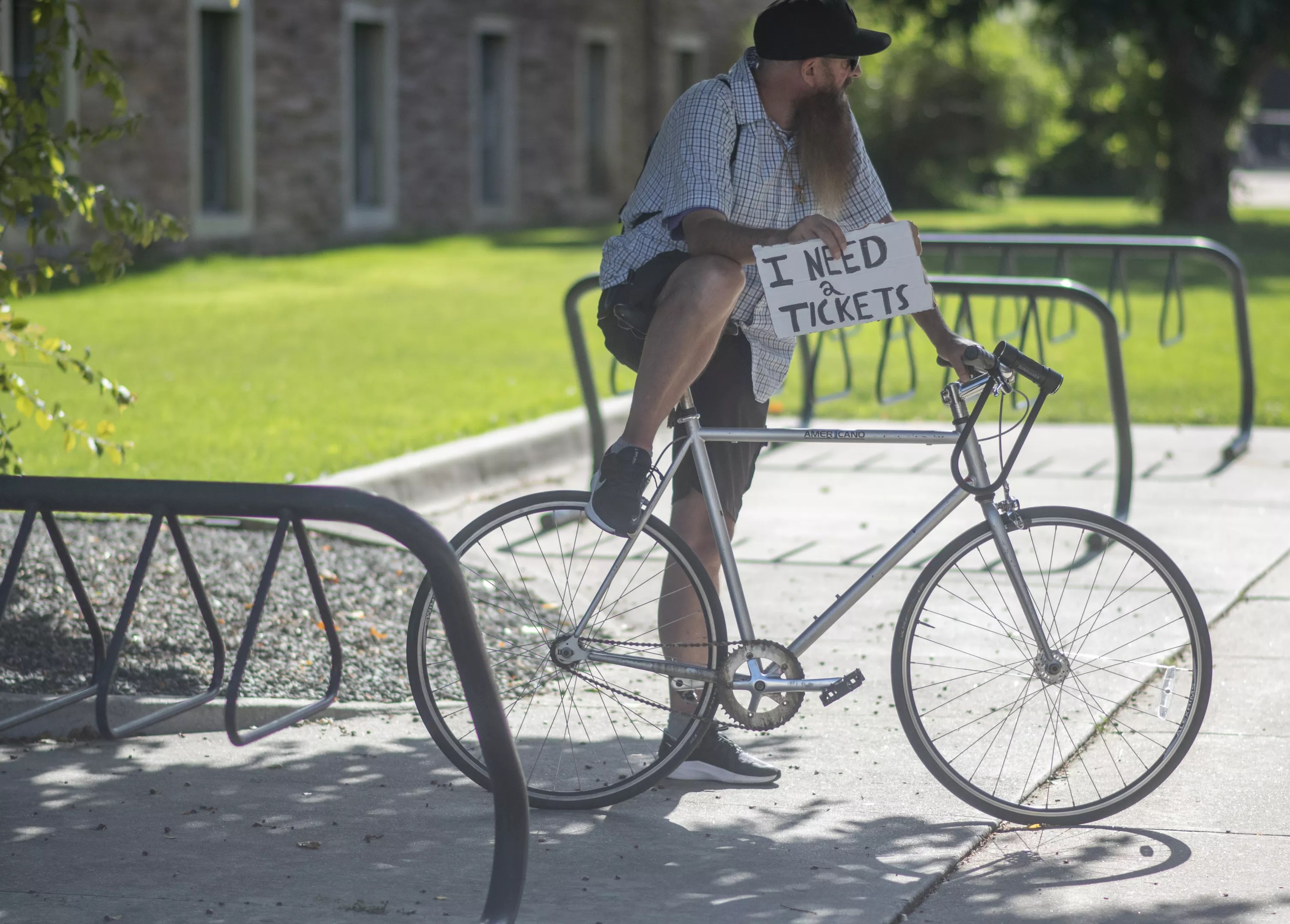 Ticket seekers lined the entrance to Folsom Field in hopes of a handout.