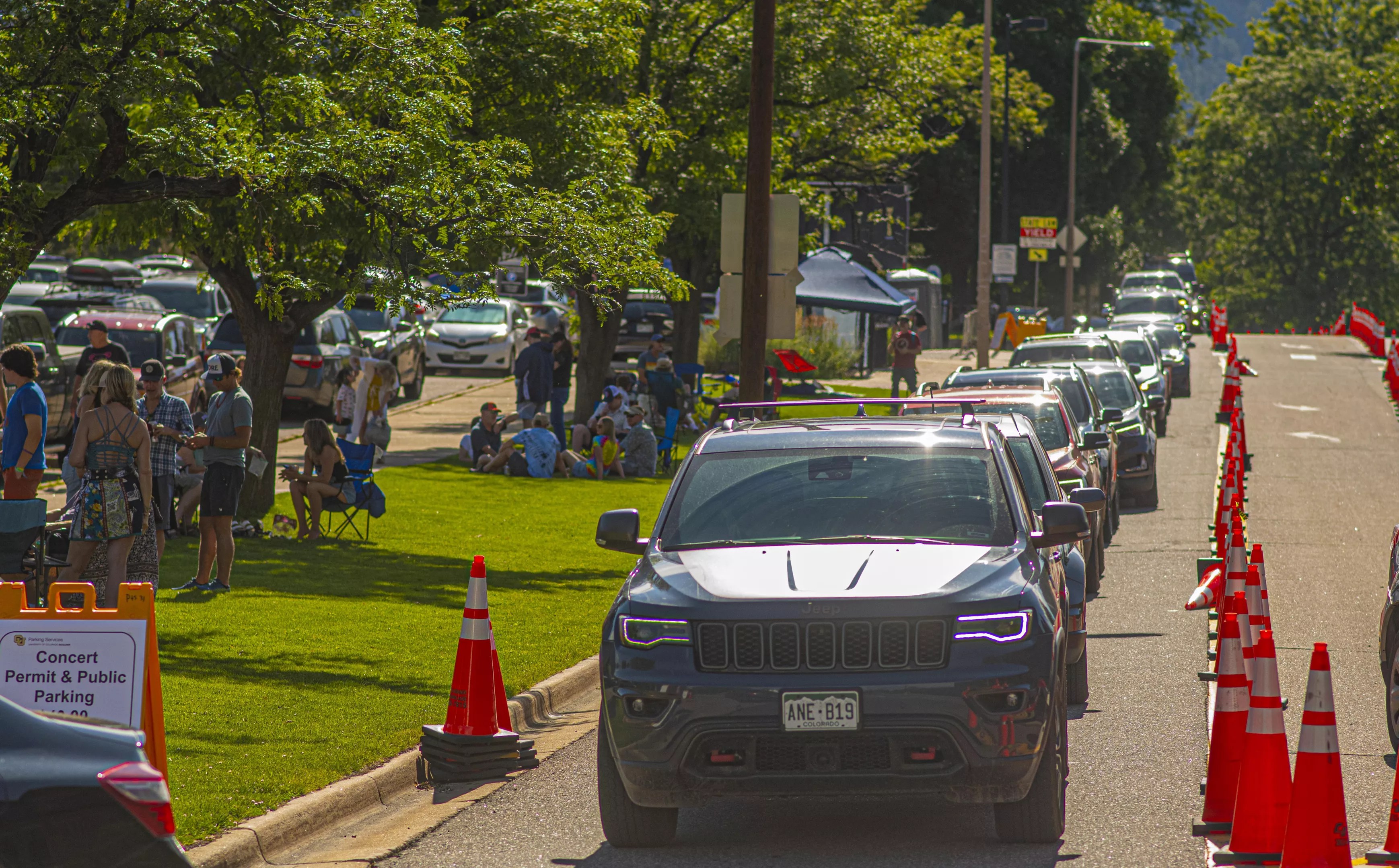 Train of cars making their way to parking on the University of Colorado’s campus for the first night of four Dead and Co. shows at Folsom Field.