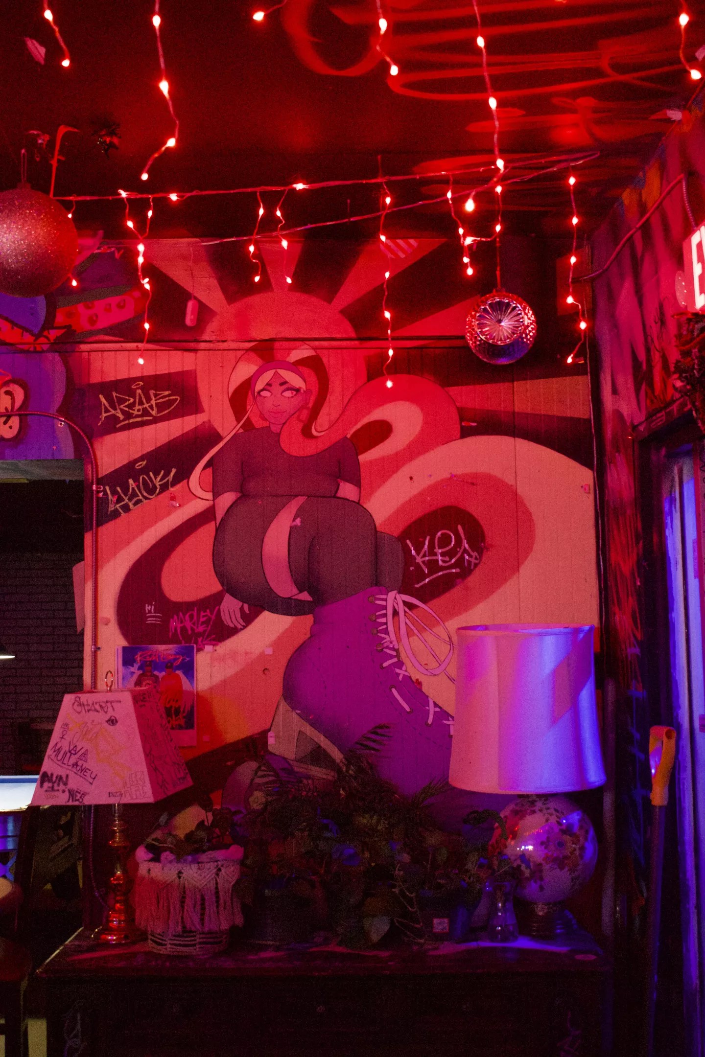 The importance of such events is underscored in the winter season, when nightlife enthusiasts brave the cold to support local artists. Tucked away next to Blue Moon Brewery, River has become a home away from home for its loyal customers and the musicians who perform there. Years of art, graffiti, and song lyrics cover the walls, and scrawled signatures fill the ceiling, all adding to the warmth of the multi-color lights throughout the bar. And thanks to She Who Wont Be Named and the community she’s built with DJ NY, Tuesday nights are bustling with energy in this riverside dive.