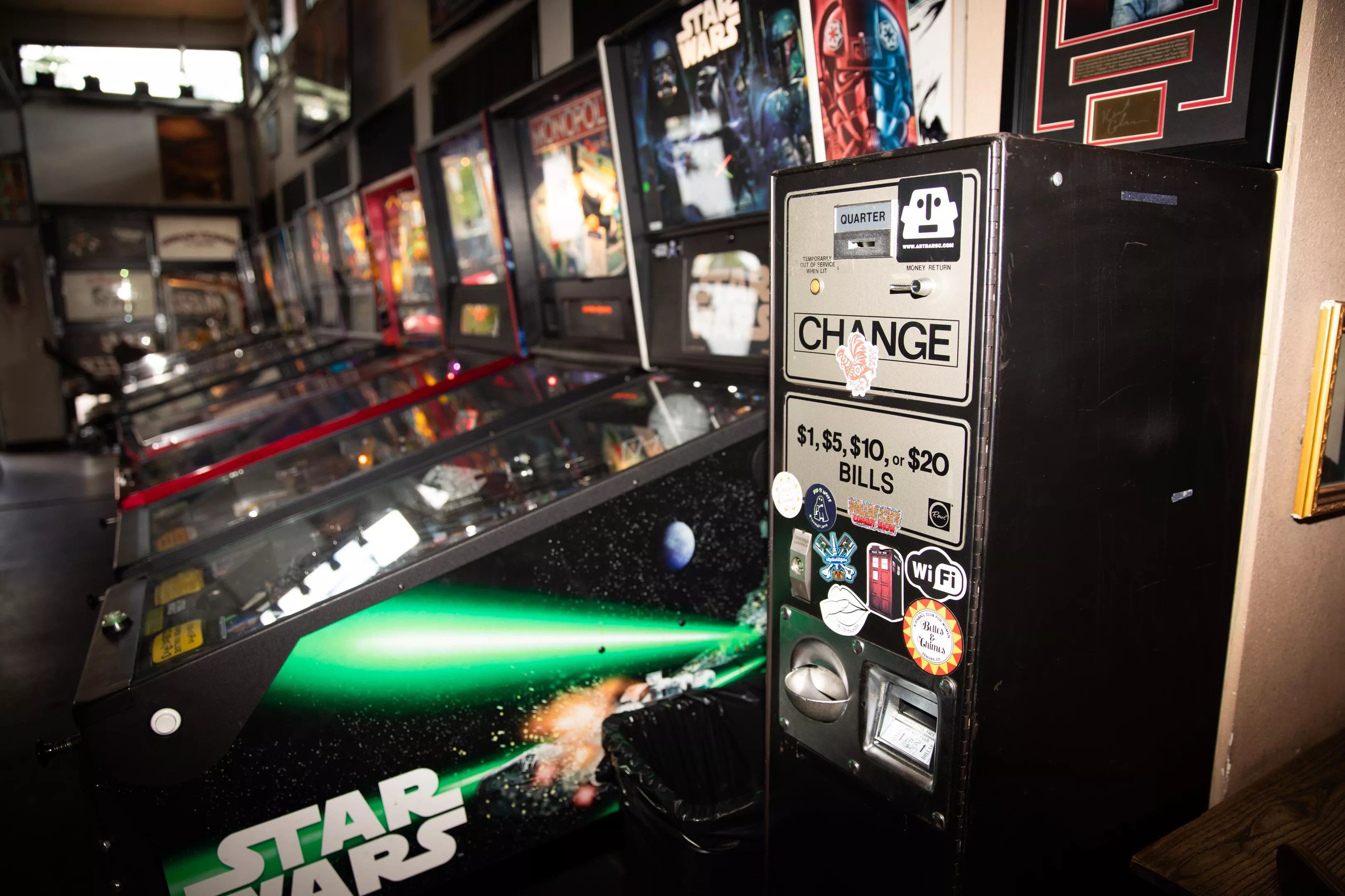 The Monkey Barrel is home to over a dozen pinball machines and gaming consoles.