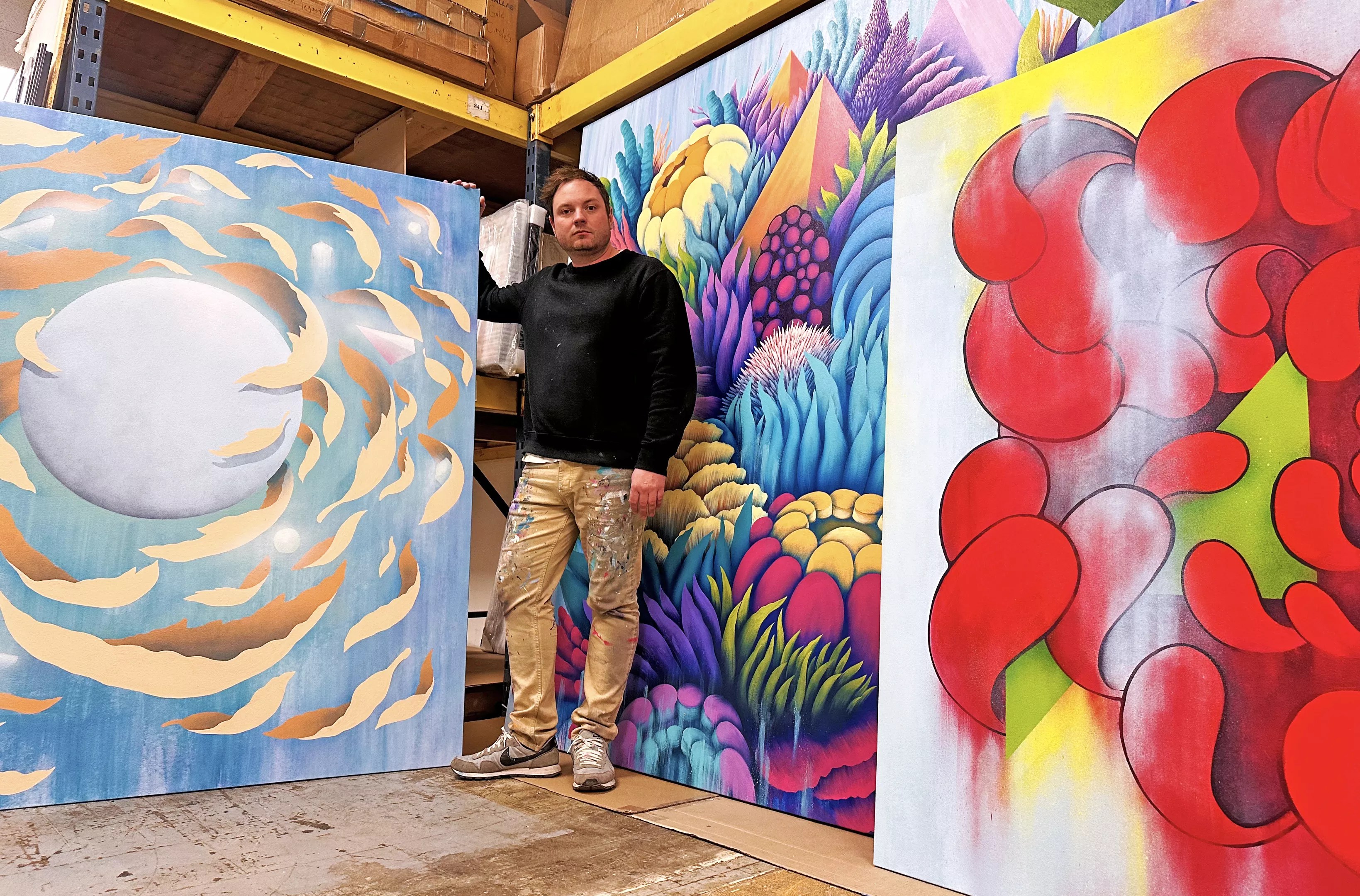 “It’s about stealing someone’s attention even just for thirty seconds,” he says. “If I can get somebody to not think about a bill or a health issue or an issue with somebody else, even just for the thirty seconds where they’re looking at that painting, that’s a win. Because you just teleported someone into a space that they can never get to in their normal life.”