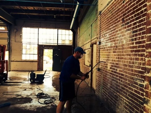 “Because we didn’t have any money, we had to do all the renovations ourselves,” Scott explains. Beginning in August 2014, friends and family arrived with chainsaws to help clear out the collapsing mezzanine and the remains of previous tenants, including artists and NoDo Urban Garden Supply. They pressure-washed decades of dirt off the walls, often in the dark, as there was no power until late February.