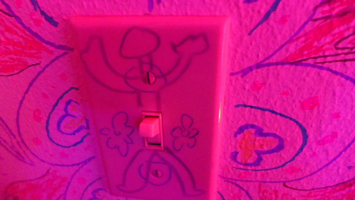 Graffitied light switch at Moon Magnet.