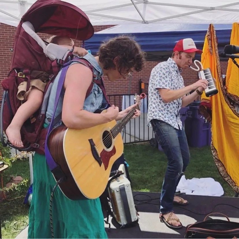 The Tredinnicks have hosted a weekly open mic at Woods Boss since 2018, and after they had their daughter in May 2019, they often took her along to the event. “Music brought Luke and me together, and we wanted music to be a part of our lives,” Tredinnick says. When she was smaller, they would sometimes perform with their daughter in a baby carrier on stage.