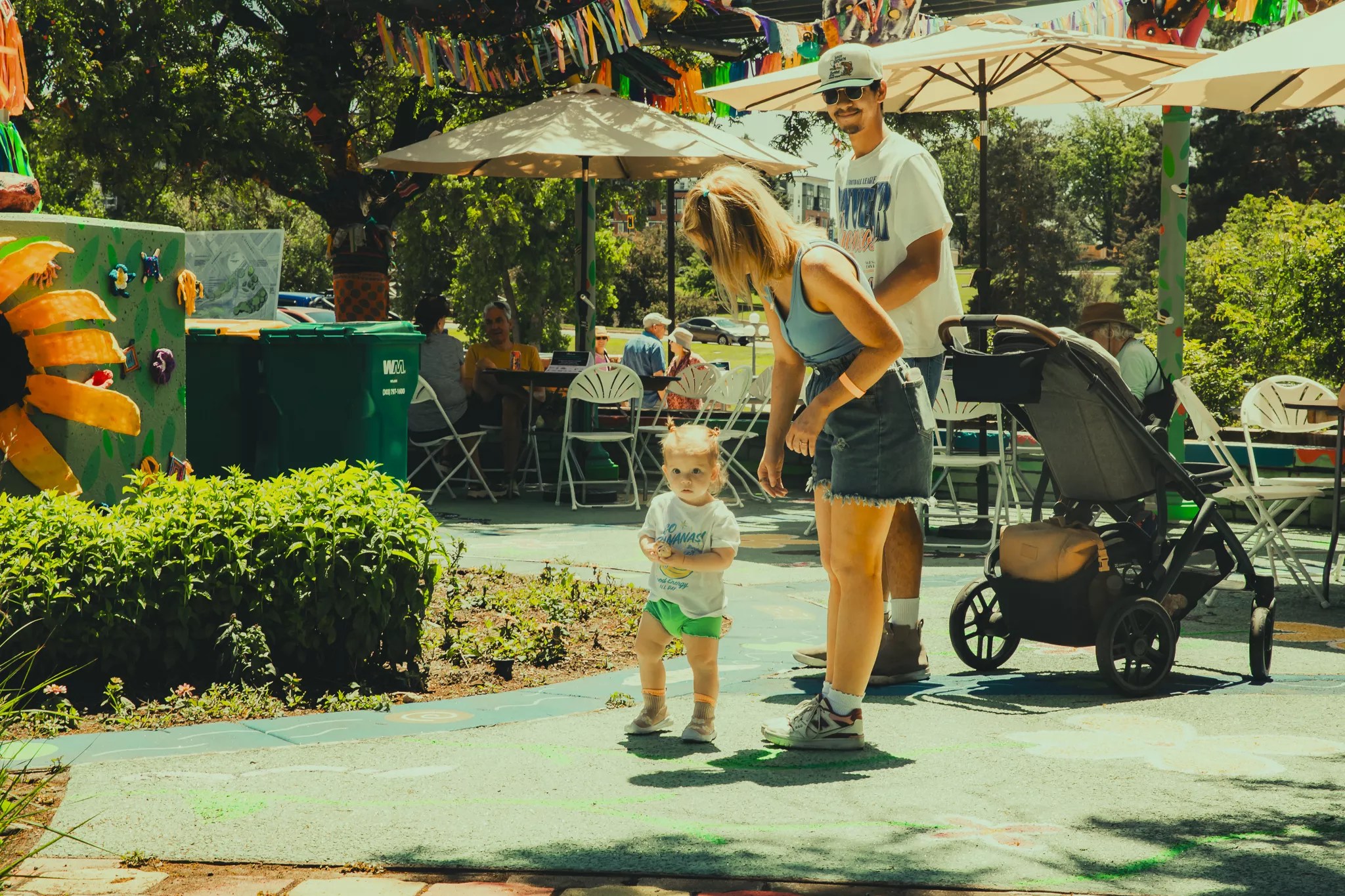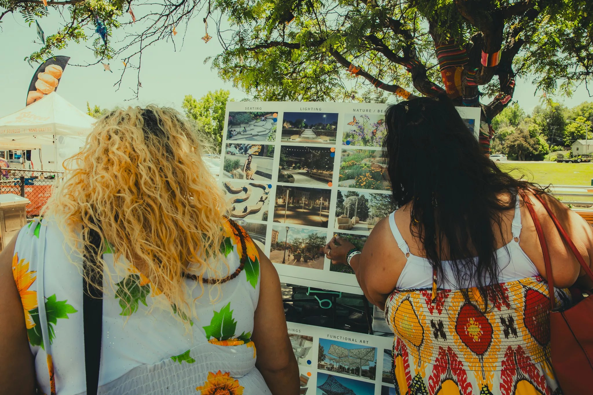 A couple enjoys the art installations at Indiewood Street Festival.