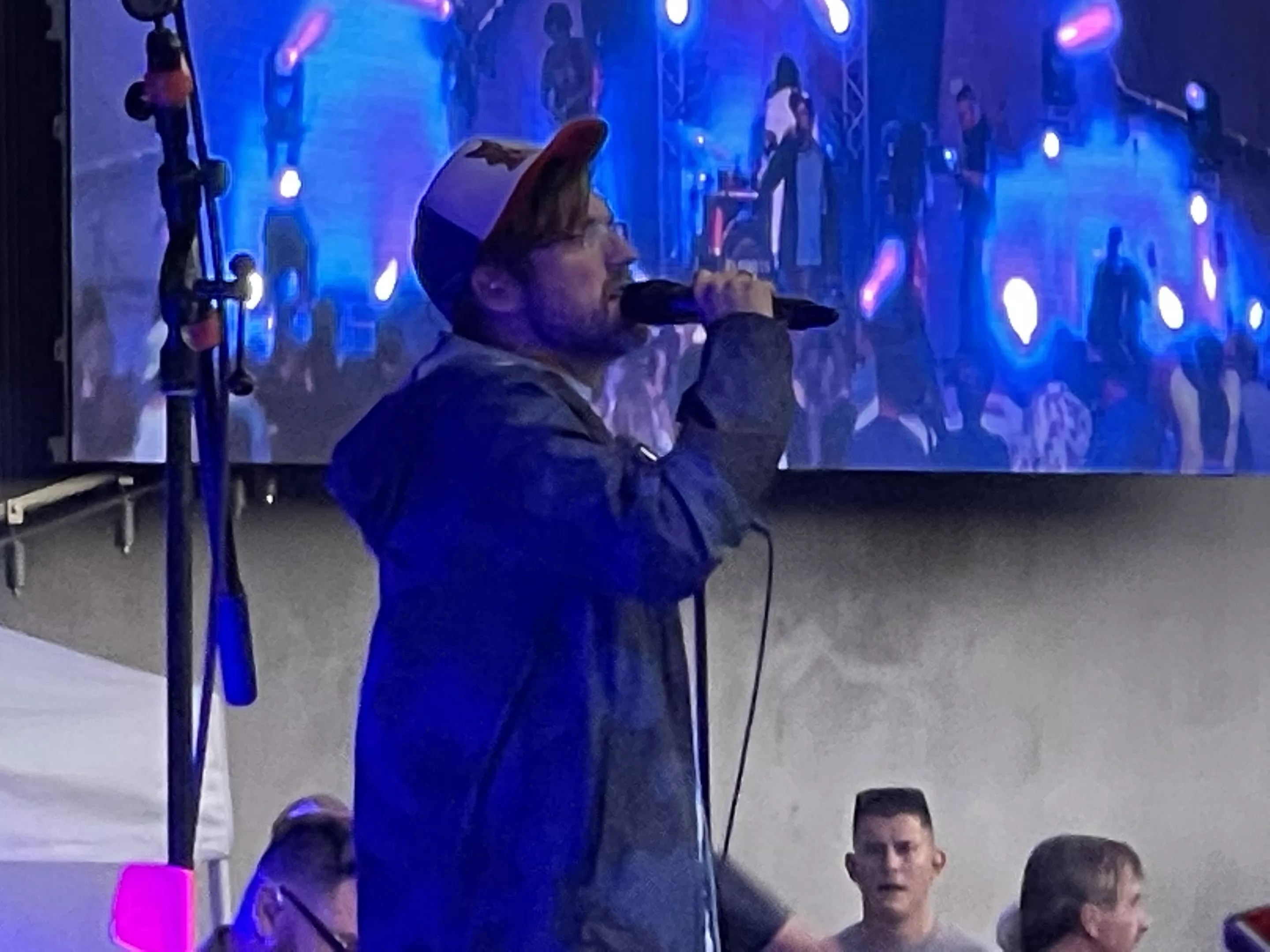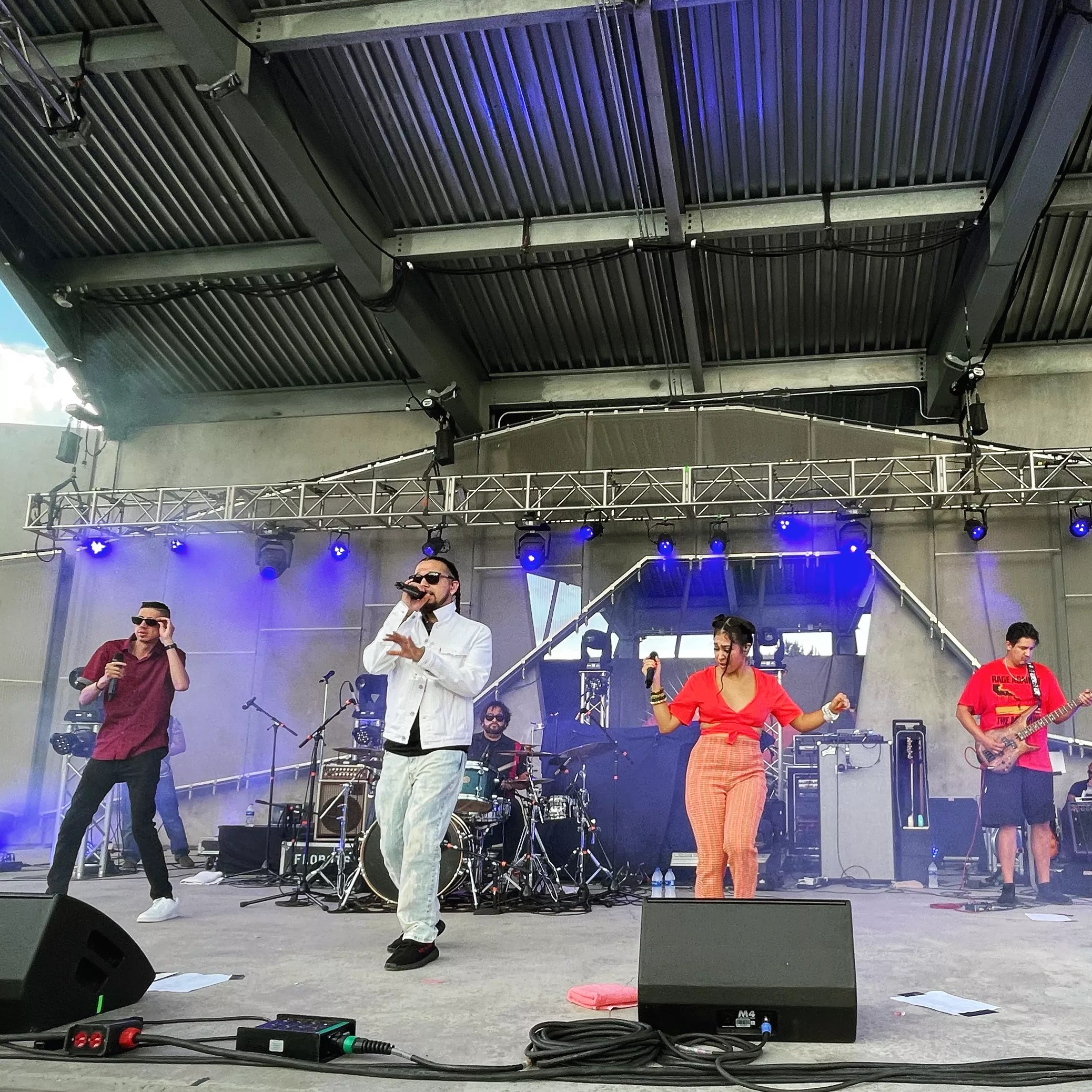 The evening started with Denver’s revolutionary hip-hop act 2MX2, accompanied by the powerful singing of Jon Shockness, aka Kid Astronaut, and Flobots masterful monster of a drummer, Kenny O, delivering danceable messages of solidarity, anti-capitalist resistance and eco-justice – in English and Spanish. Lolita sang her banger, “Toda Mi Gente,” an anti-fascist anthem written during the Trump years. Then, to beats produced by DMD, she and fellow rappers Owen Trujillo and Juice E.T. Hugo pumped up the crowd, teased Flobots’ set, garnered cheers and reminded us all why it’s great to be alive and struggling – even when things are bleak.