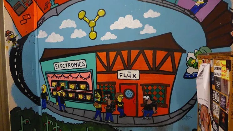 A mural in Flux Capacitor’s entryway.