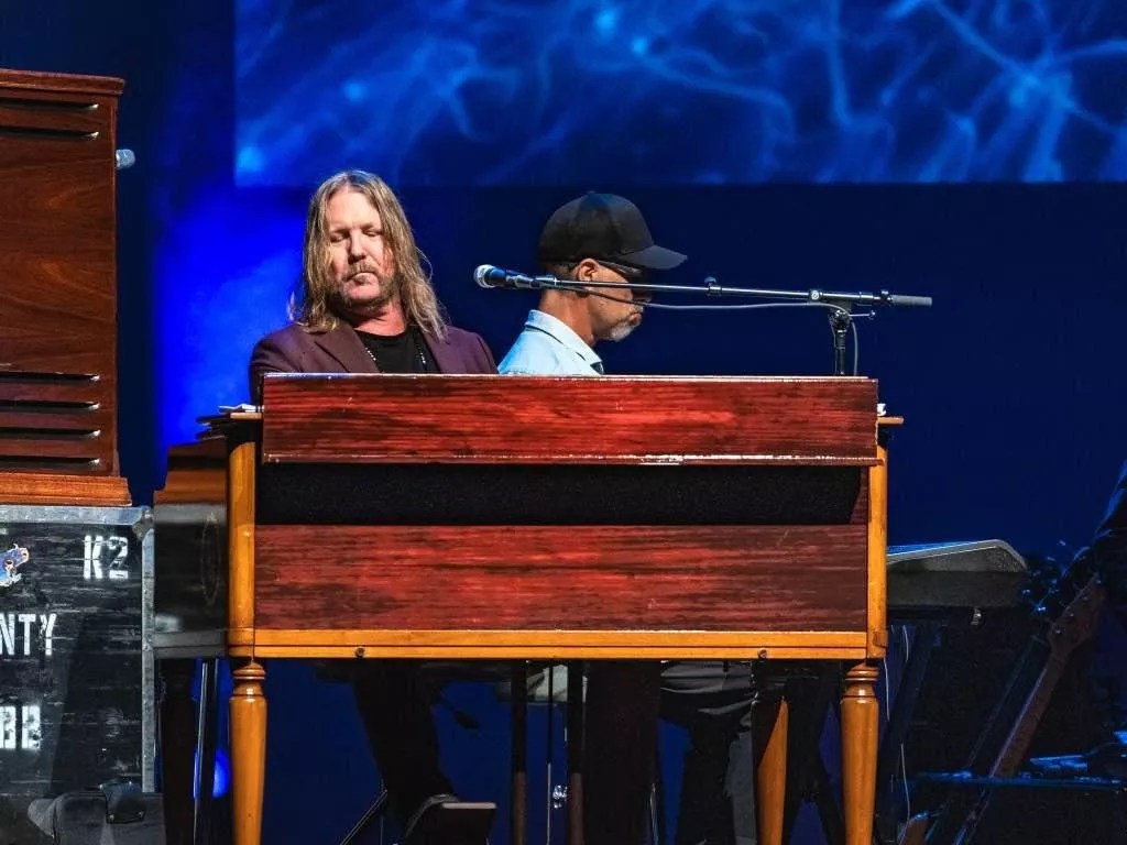Devon Allman, left, plays his dad’s Hammond B-3 organ during a recent Allman Betts Revival show.