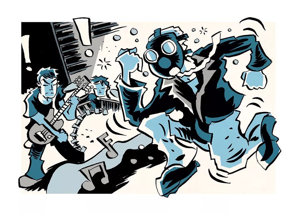 “We got started, and next thing I know, Critter is beside me, decked out in a fifteen-pound leather biker jacket (it was easily 100 degrees Fahrenheit in there) and a gas mask, skanking around like the dude in the DRI logo. He kept bumping into us both, but it was an energetic debut. We looked good with the floor lighting, despite the near-heatstroke. My one regret was that my significant other decided to split before we played, but I can’t blame her: When she arrived, the bartender informed her that one of the daytime regulars had shit his pants on the only remaining bar stool.”