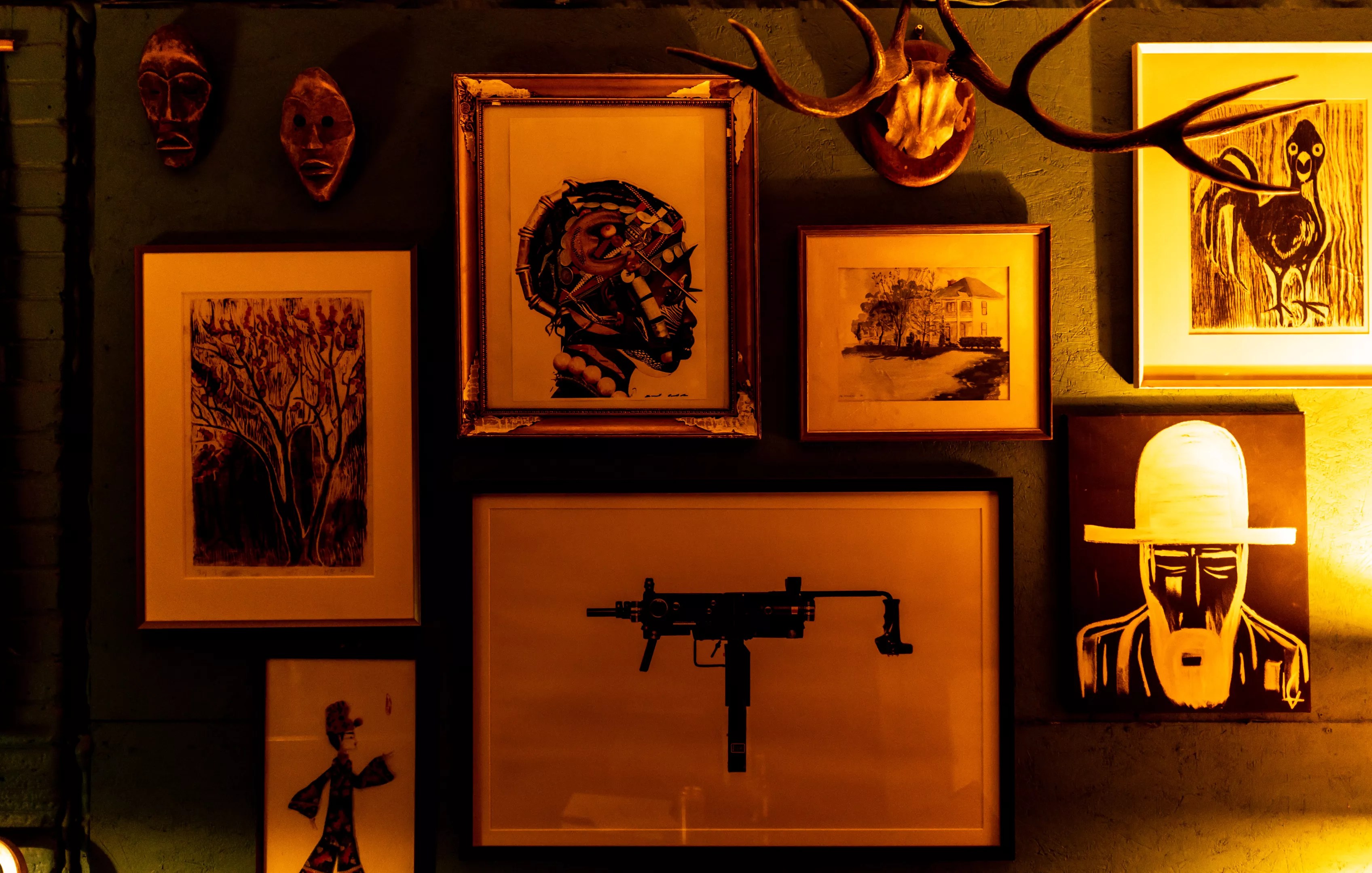 A self-described “hoarder at heart,” Laurie challenged himself to not buy anything new for the clubhouse. Every item in the building is something from Invisible City’s first location or was given to him by a friend or family member. “I wanted this to feel like you’re walking into an eclectic home or an old-fashioned Indiana Jones museum,” Laurie says. “People often ask me, ‘How could you trust all these strangers…with your most valuable possessions?’ And it’s because they see it as home, so they treat it as a home.”