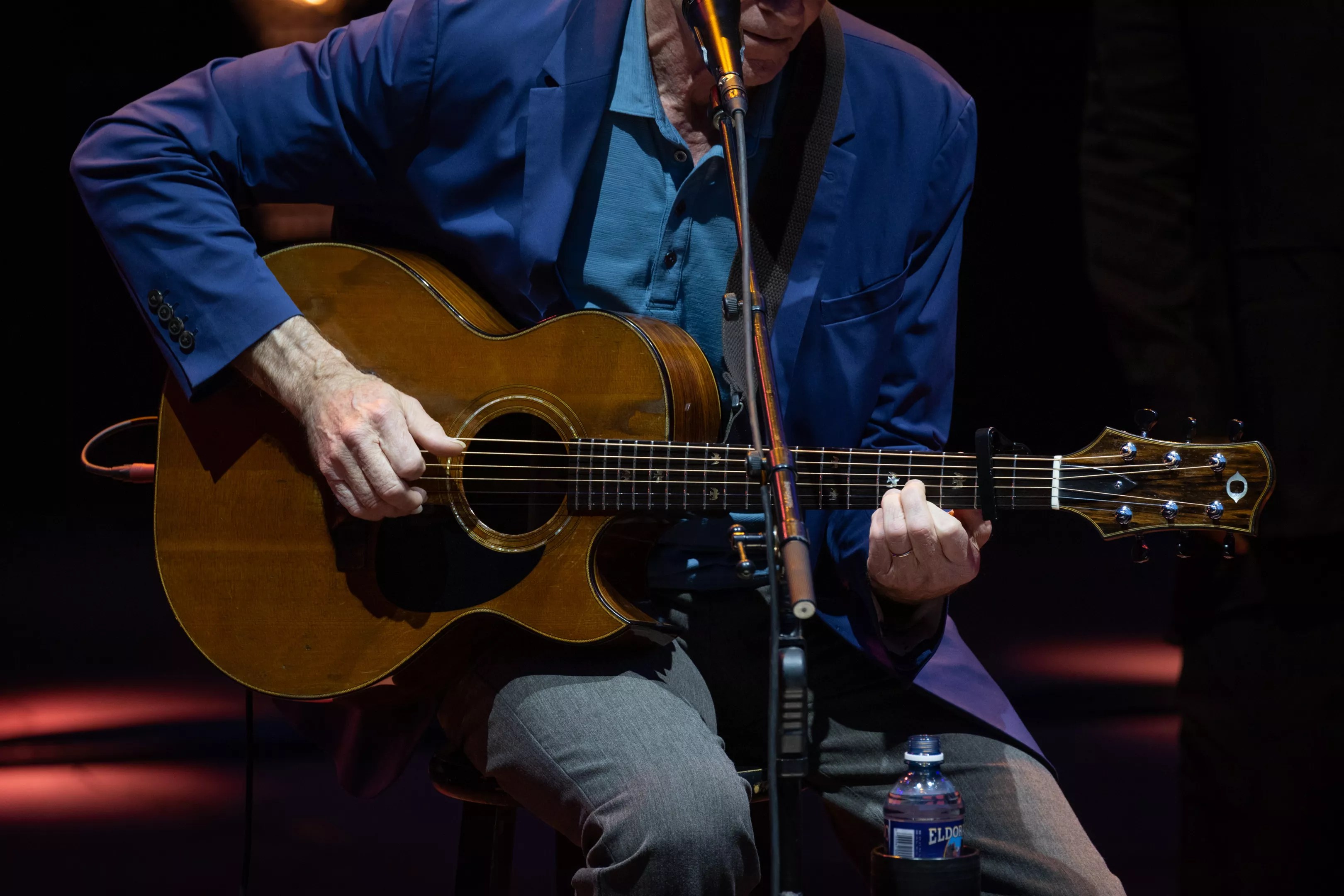 Taylor’s style of fingerpicking his guitar is a unique part of his music.
