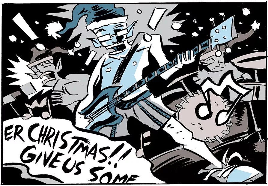 “It was around Christmas time, and there was a holiday showcase at the Cricket where lots of local punk bands would be playing a song or two each. My friend John and I loved the Chicago punk band the Dwarves, so we decided to form a Dwarves-like band called the Elves, as befitted the holiday theme. I played bass and could only barely play the instrument at the time, but John and I learned one song for the show: the hilarious ‘Father Christmas,’ by the Kinks.