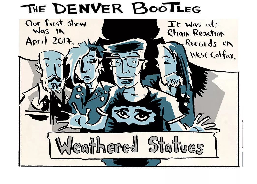 Jason Heller: “Your first show with your new band is a whole lot easier when it’s with old friends. Josh and Justin Lent, who run Chain Reaction Records, are fellow veterans of the ’90s punk scene in Denver. I’d also played in bands with all three of my Weathered Statues bandmates: in Hyacinth with our singer, Jennie Mather; in Red Cloud West with our drummer, Andrew Warner; and in 25 Rifles with our bassist, Bryan Flanagan. To make it even more of a family affair, I used to play in a punk band called Crestfallen with John Mather, Jennie’s husband.
