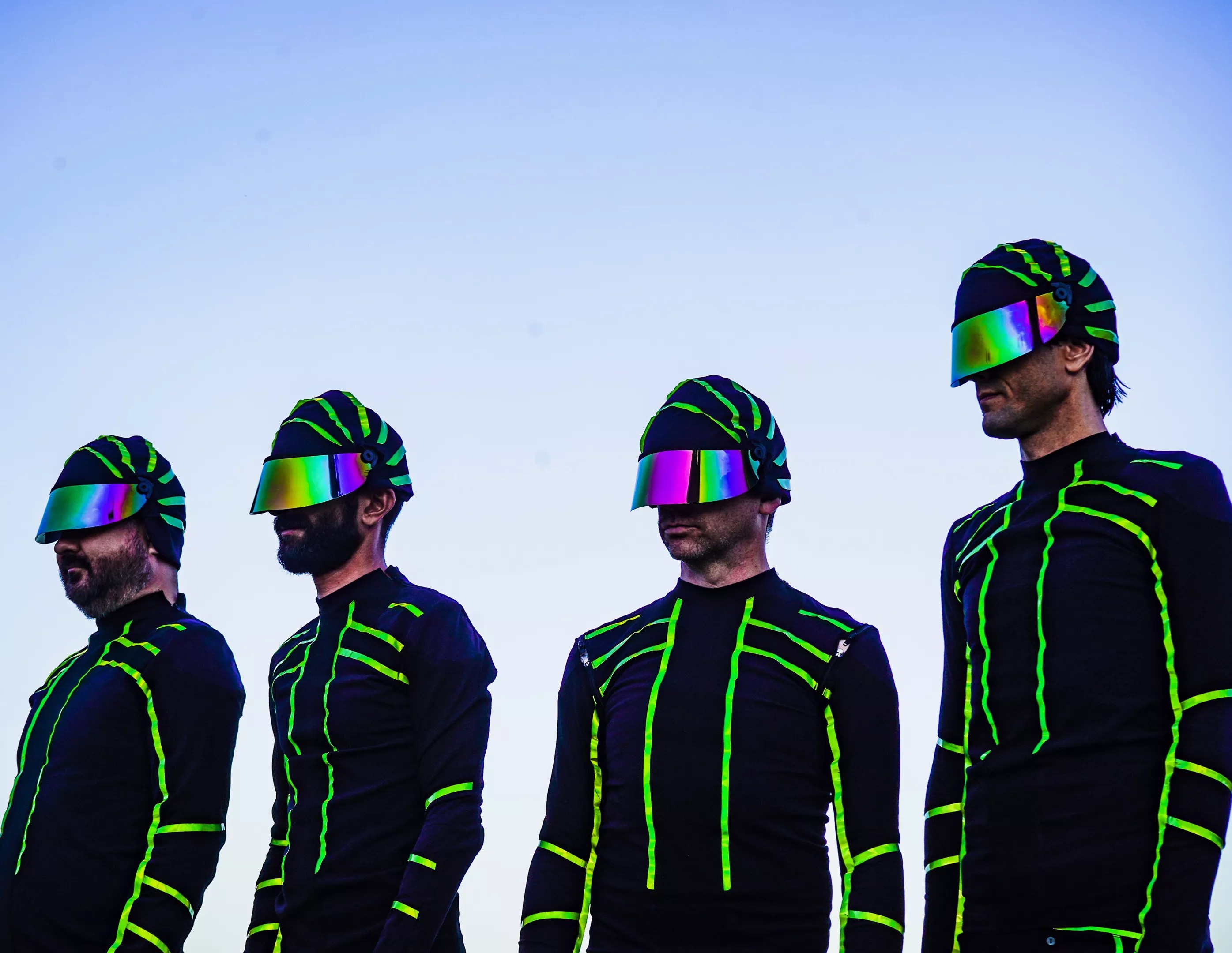 Most of our uniforms have been made by Ben Warwas. Advantages would be our appearance in some sort or artistic realm and the absurdity that we embrace, which often leads to the promotion that we get from people complaining and criticizing us online. Disadvantages would be vision and practicality, which trickle down to our actual performance. It ultimately makes us have to be better performers.