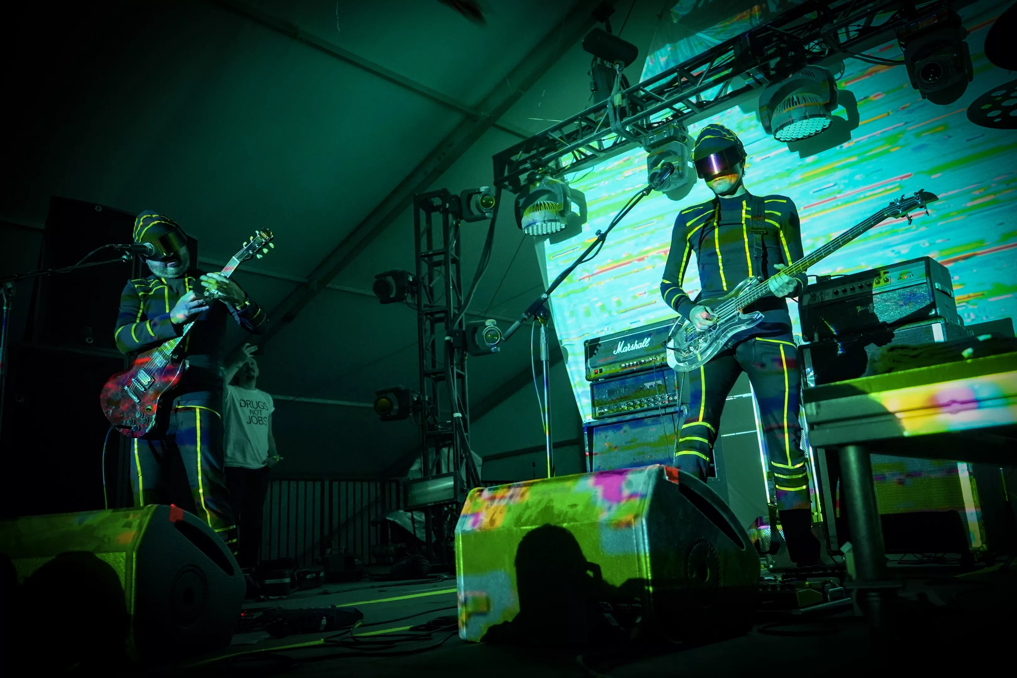 The snazzy new uniforms The Locust is sporting on this tour were created by designer Ben Warwas.