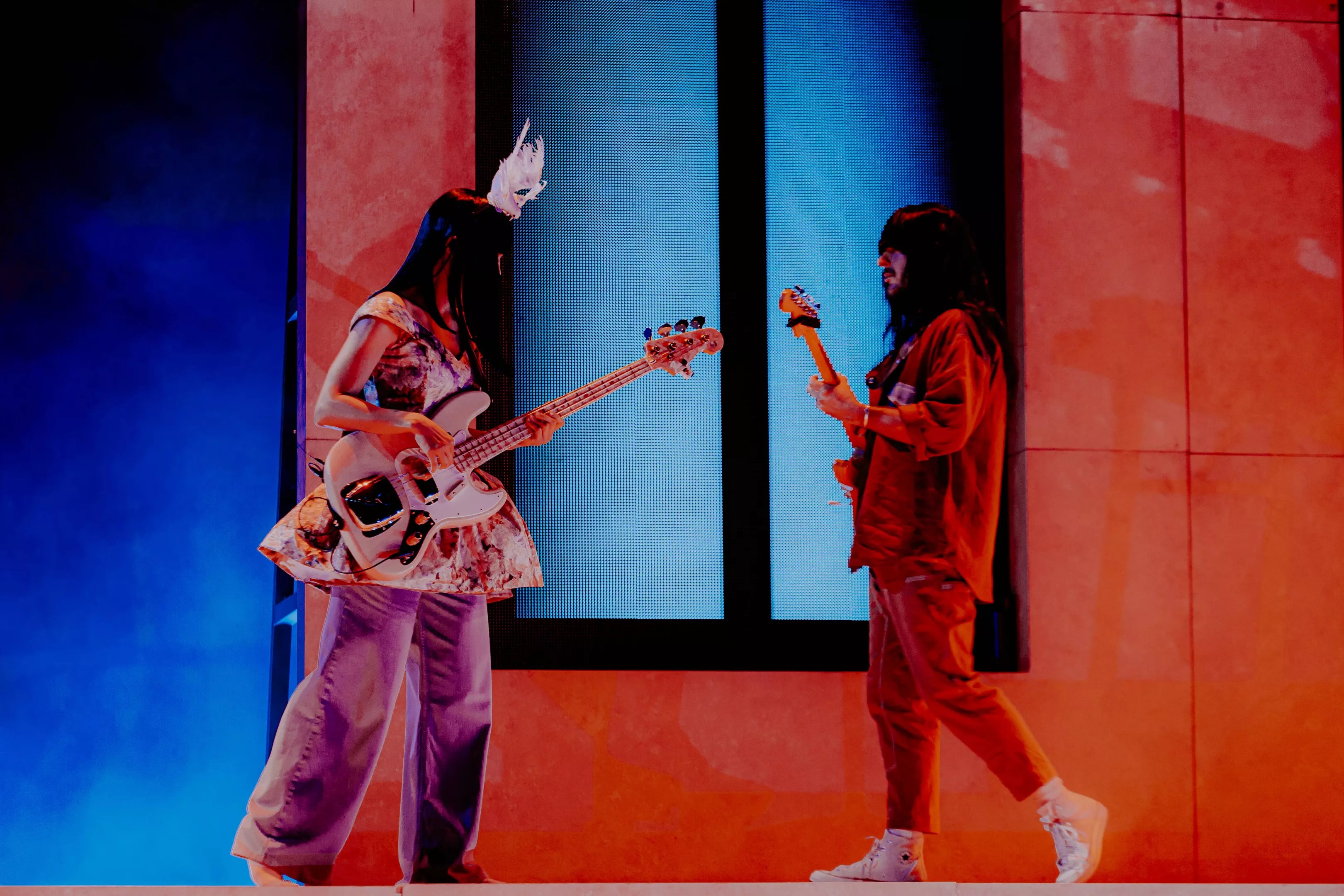 Khruangbin’s Laura Lee Ochoa (left) and Mark Speer (right) play back-to-back.